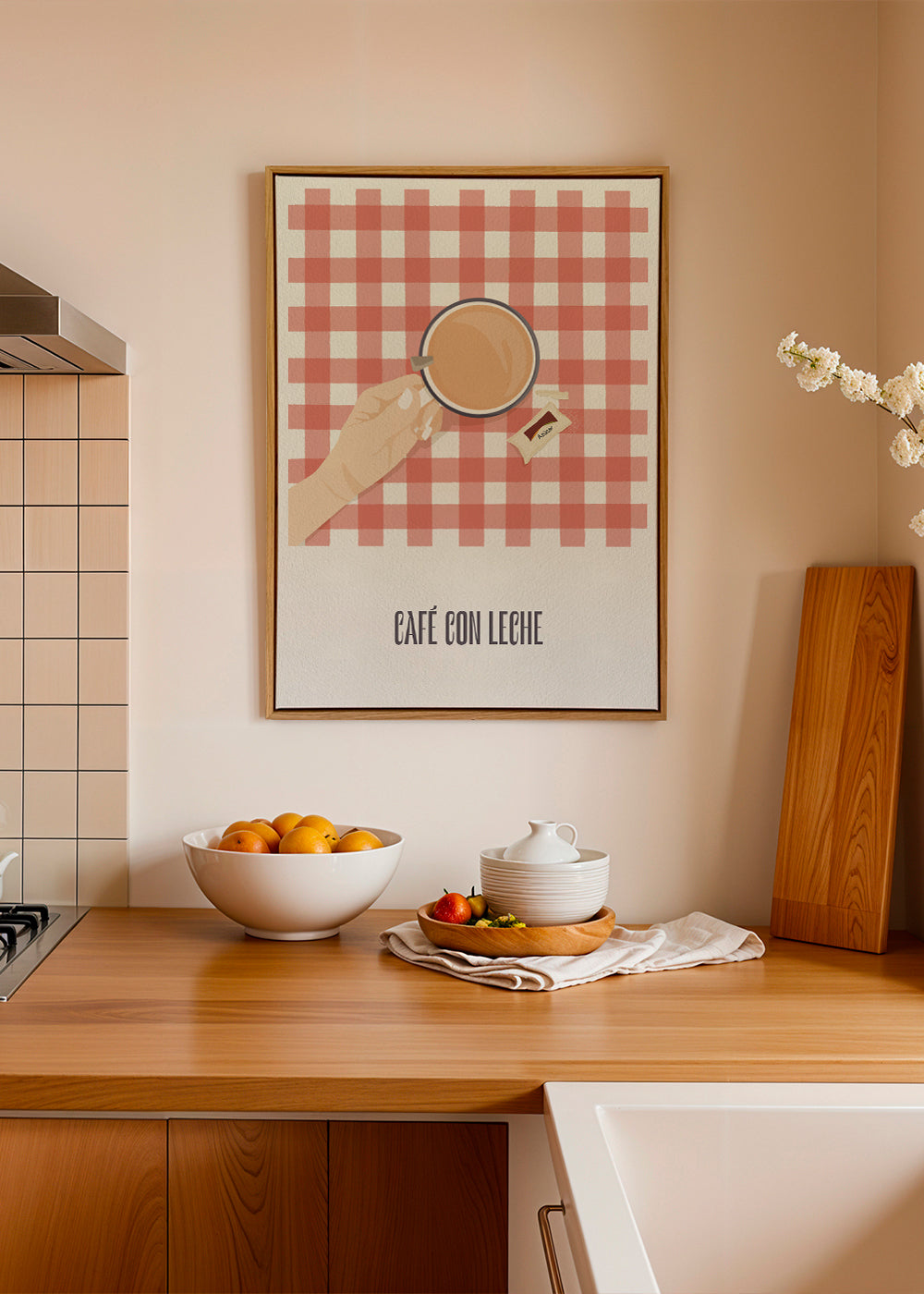 Esta pieza de nuestra selección de cuadros de café, que nos presenta Nerea Ramírez, con colores rojos, y de posición vertical. ¿Quién dice que es difícil decorar la cocina? Añade estilo a las paredes de tu cocina con esta lámina. Crea un rincón único.