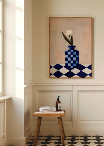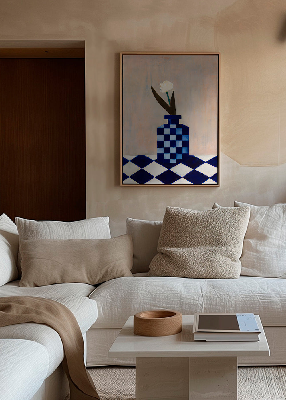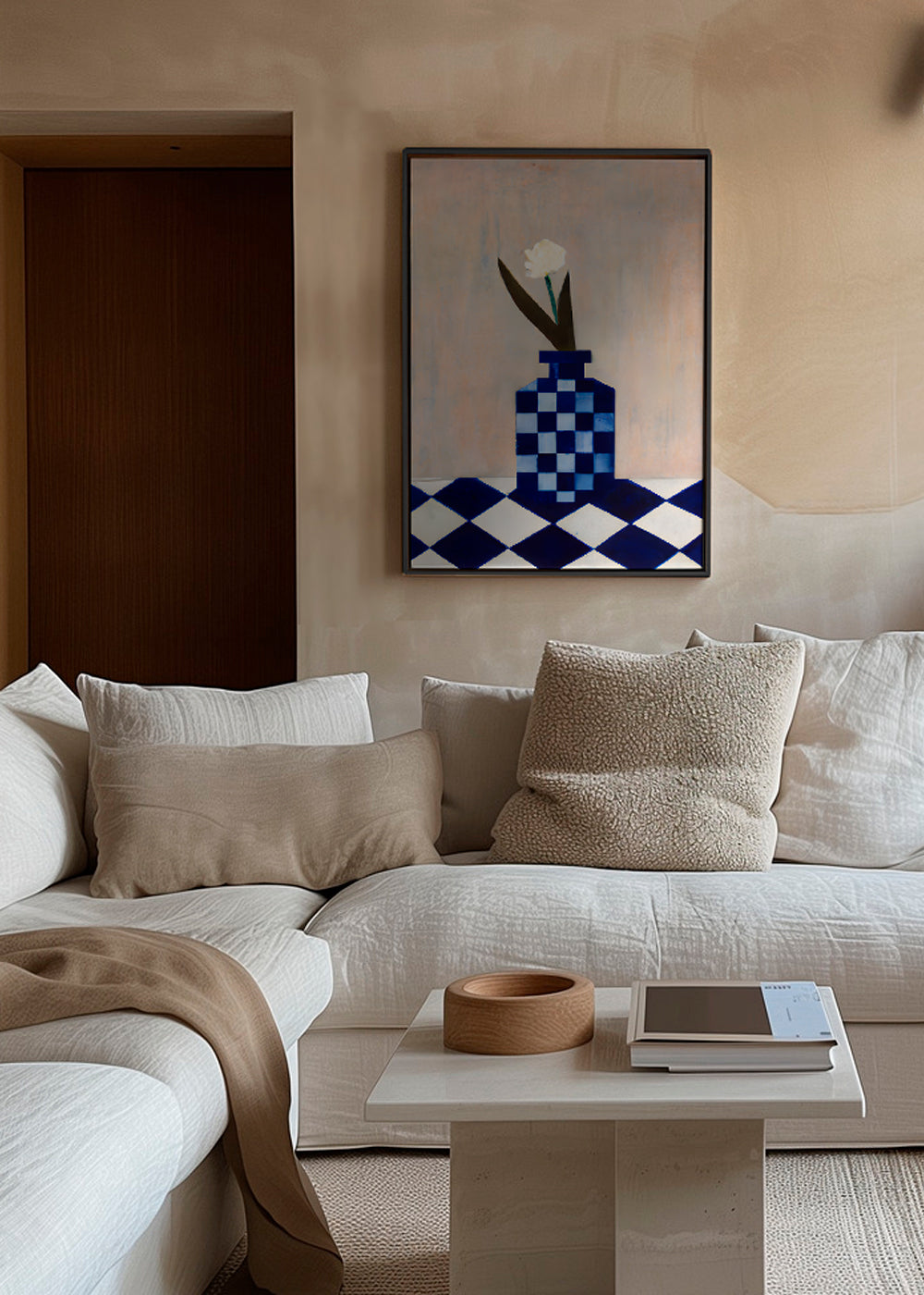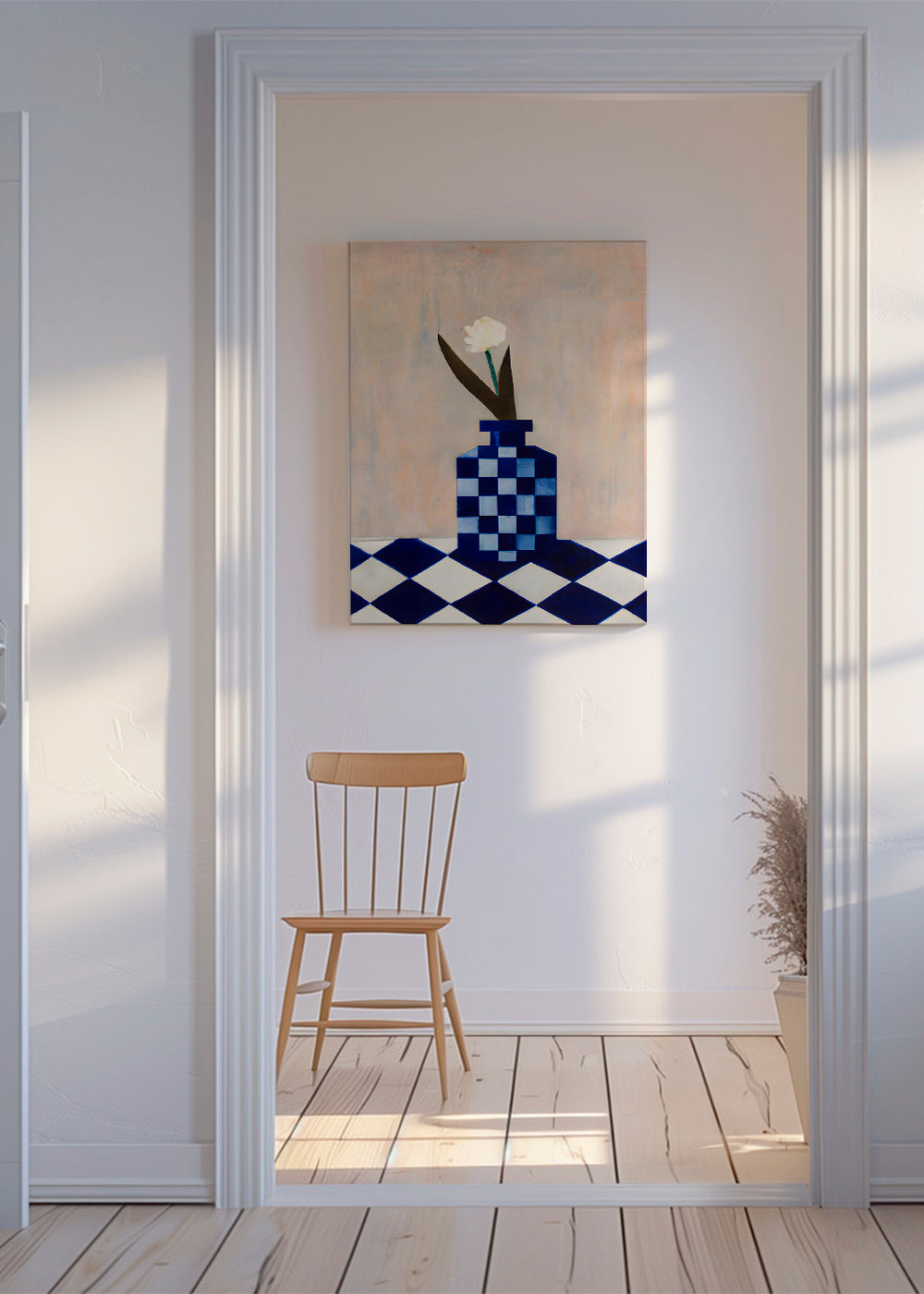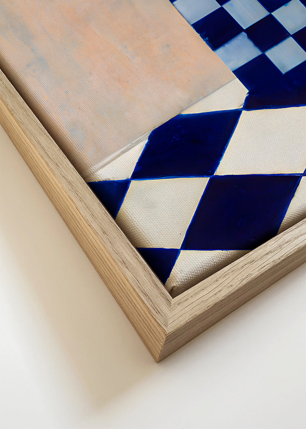 Una obra de la serie de cuadros geométricos, de la mano de Interiorisla, en tonalidades de colores azules, y en formato vertical. Esta obra con formas abstractas es ideal para combinar con cuadros geométricos y arte abstracto. Olvídate de las paredes aburridas y sosas.