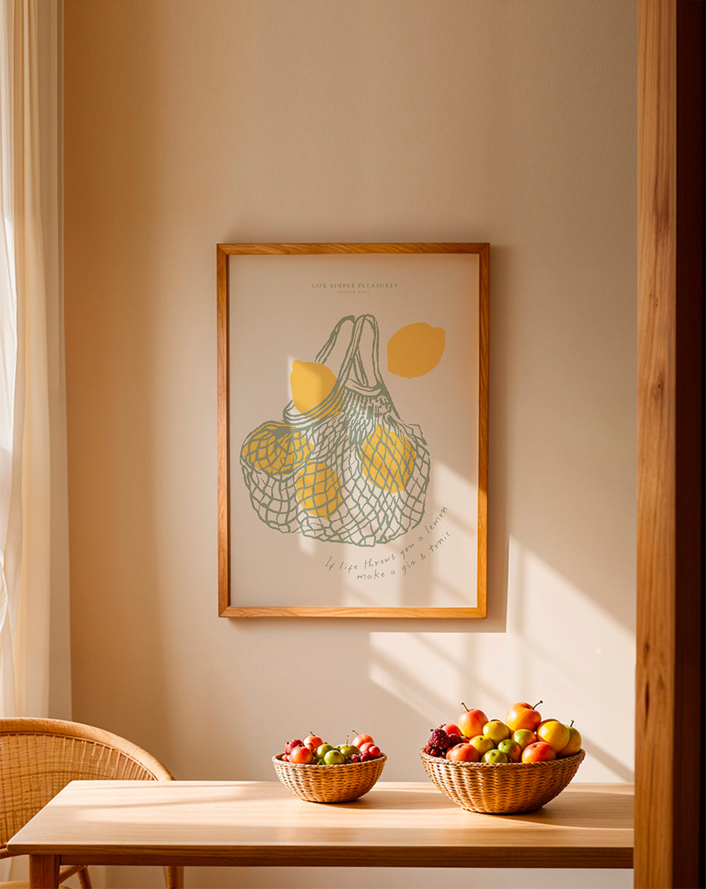Esta lámina con inspiración en nuestra colección de cuadros de comida y bebida, creada por Seven Wall Art, con tonos amarillos, y con orientación vertical. Llena tu cocina de arte combinando esta obra con otros diseños ideales para cocina. Un toque moderno para tu hogar.
