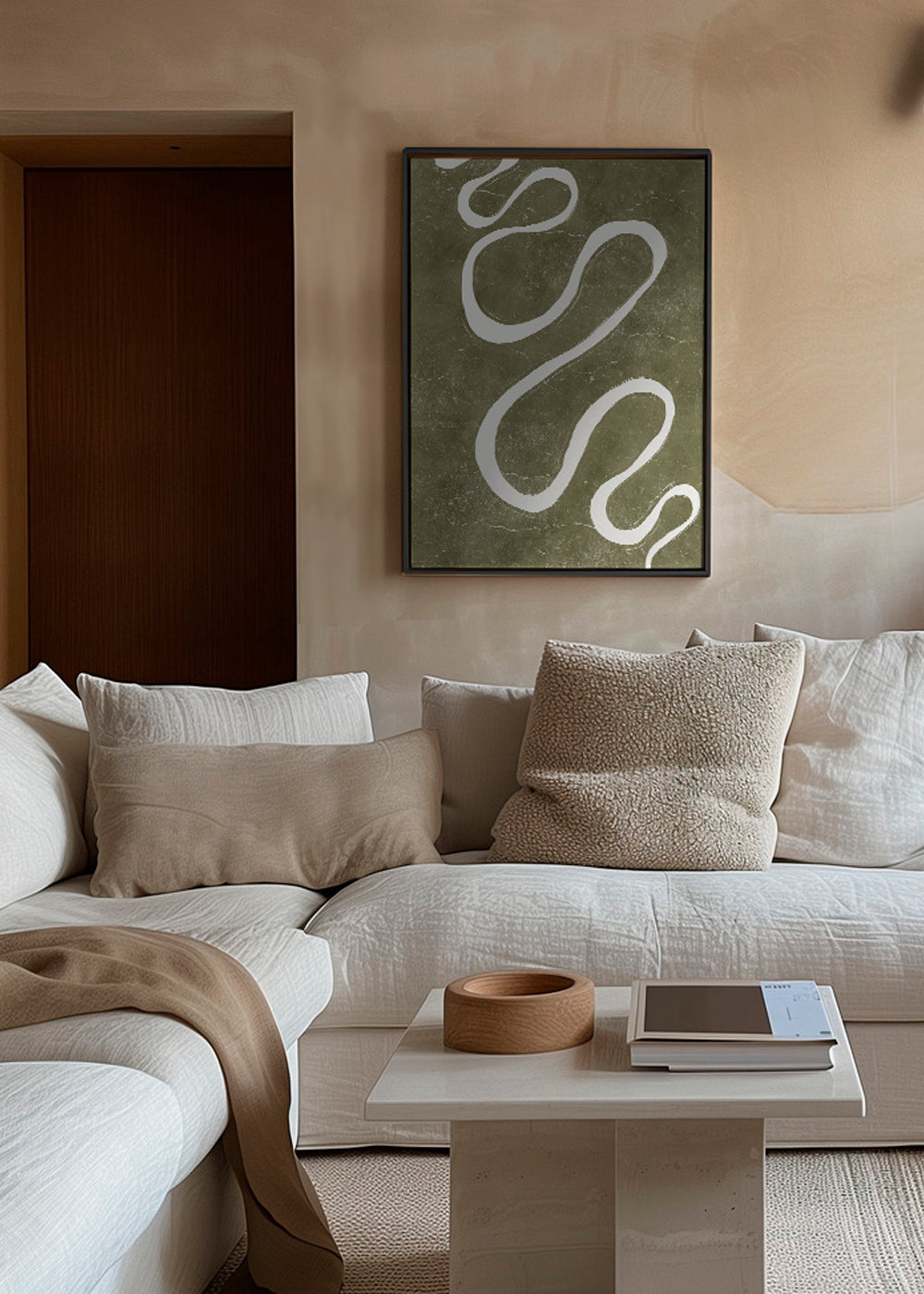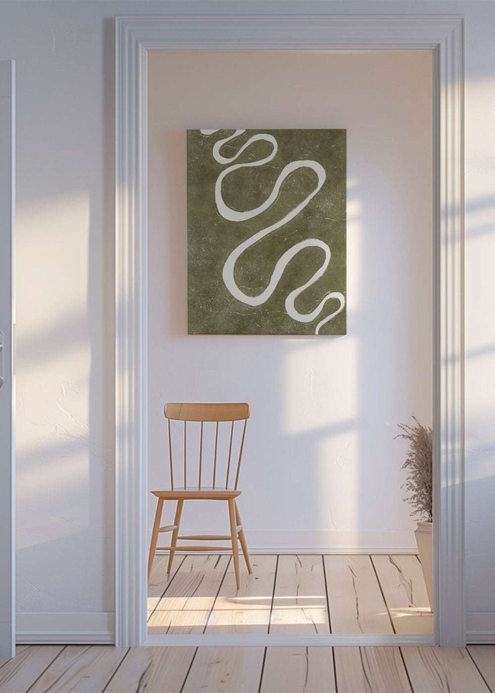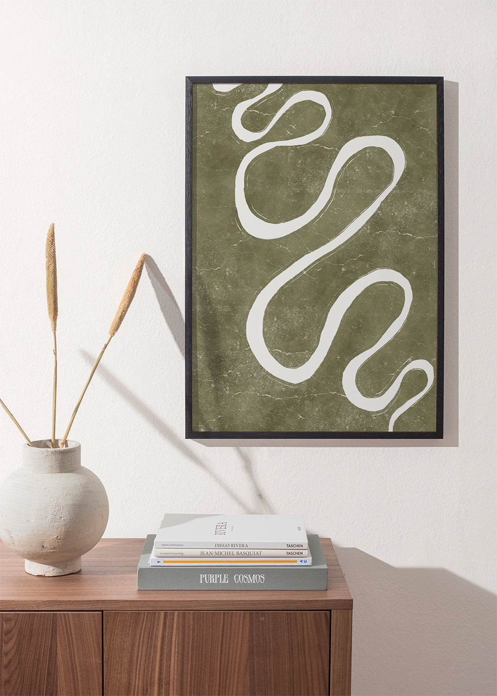 Un póster de la colección cuadros de líneas, original de Yuyu Pont, de matices verdes, y en formato vertical. Un diseño para los más cocinitas de la casa. >Decora tu cocina con cuadros< Construye tu rincón favorito.