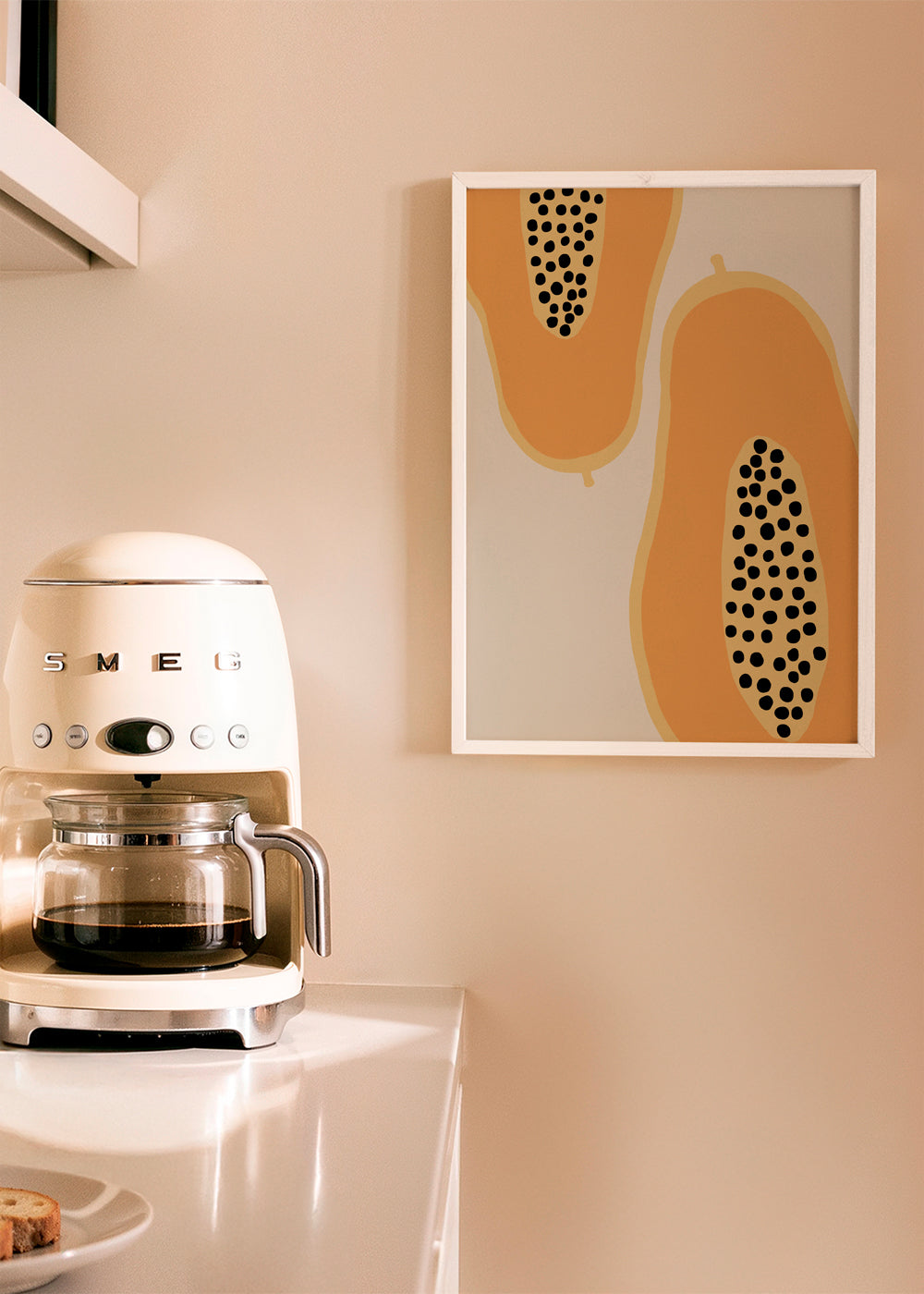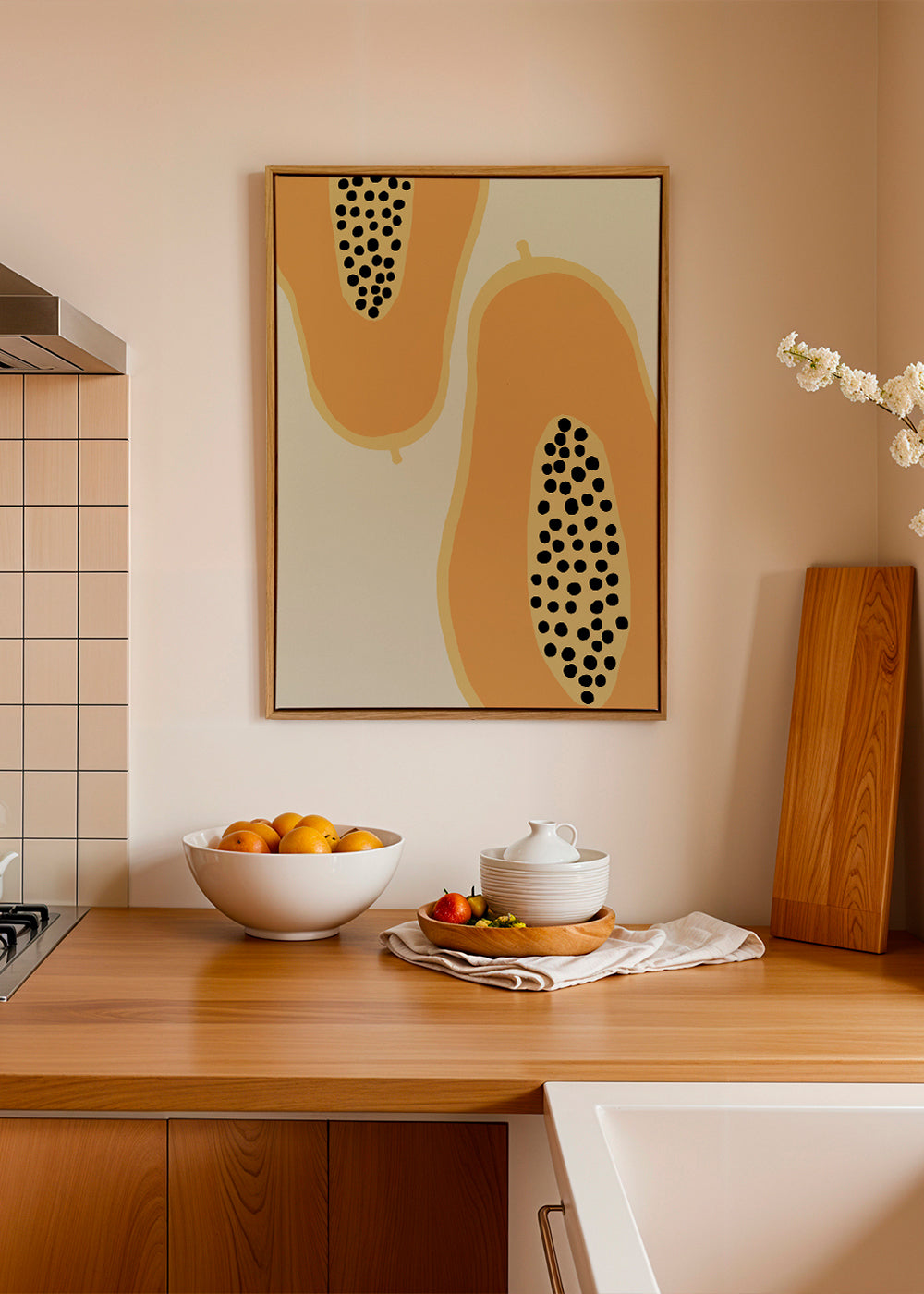 Una lámina de nuestra categoría de cuadros de frutas, de matices naranjas, y para colocar en posición vertical. Se trata de una obra ideal para decorar la cocina de tu hogar. El toque definitivo para la decoración de tu casa.
