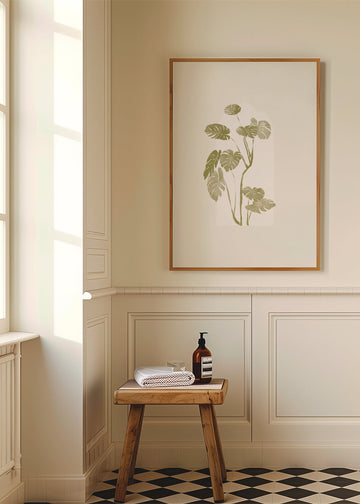 Bonito cuadro de nuestro conjunto de cuadros de palmeras, de la mano de Yuyu Pont, con pigmentos verdes, y orientada en vertical. ¿Quién dice que es difícil decorar la cocina? Añade estilo a las paredes de tu cocina con esta lámina. Llena tus paredes de arte.