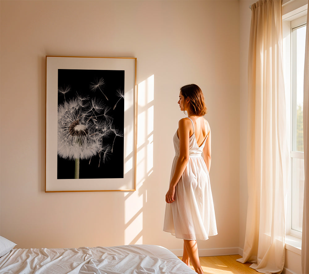 - Enmarcado gratuito: al escoger un marco, recibirás tus cuadros enmarcados y listos para colgar.