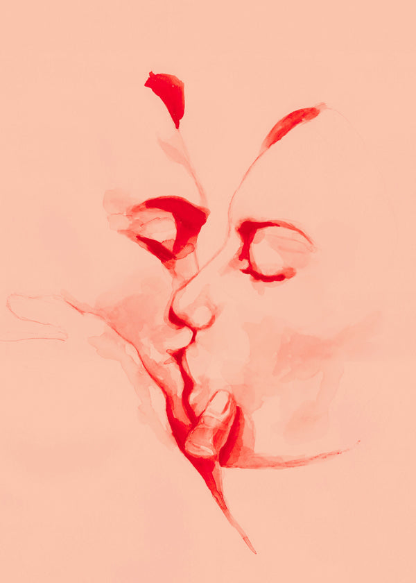 Un póster con inspiración en nuestra colección de cuadros de besos, concebida por Sophia Novosel, con tonos rojos, y en formato vertical. Los cuadros con ilustraciones son ideales para combinar con arte minimalista y abstracto. Construye un hogar que respira diseño y creatividad.