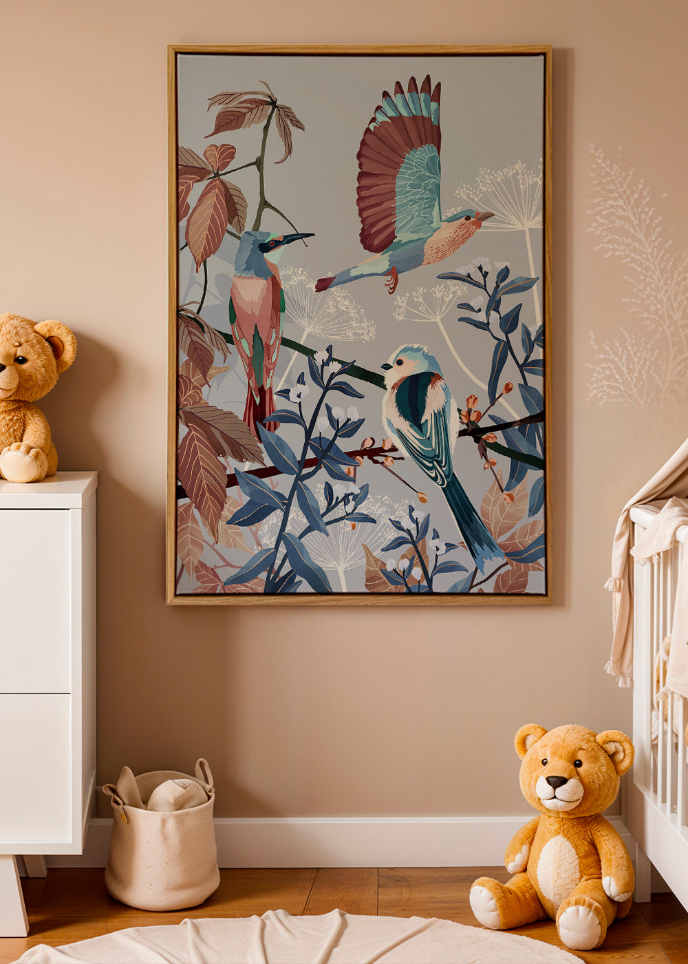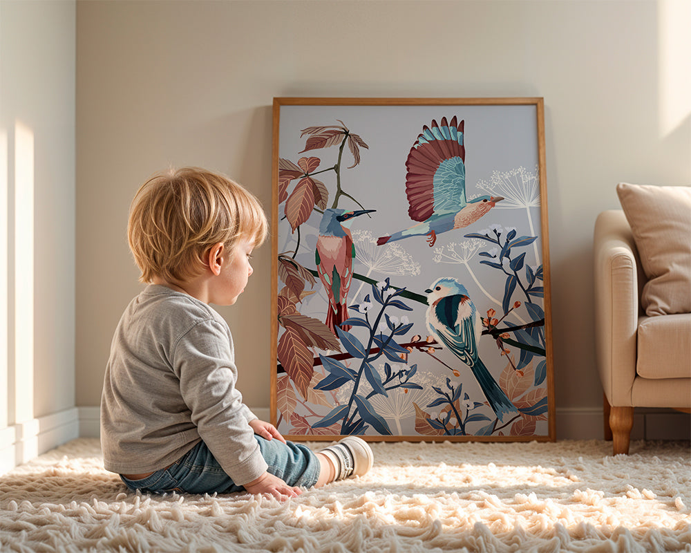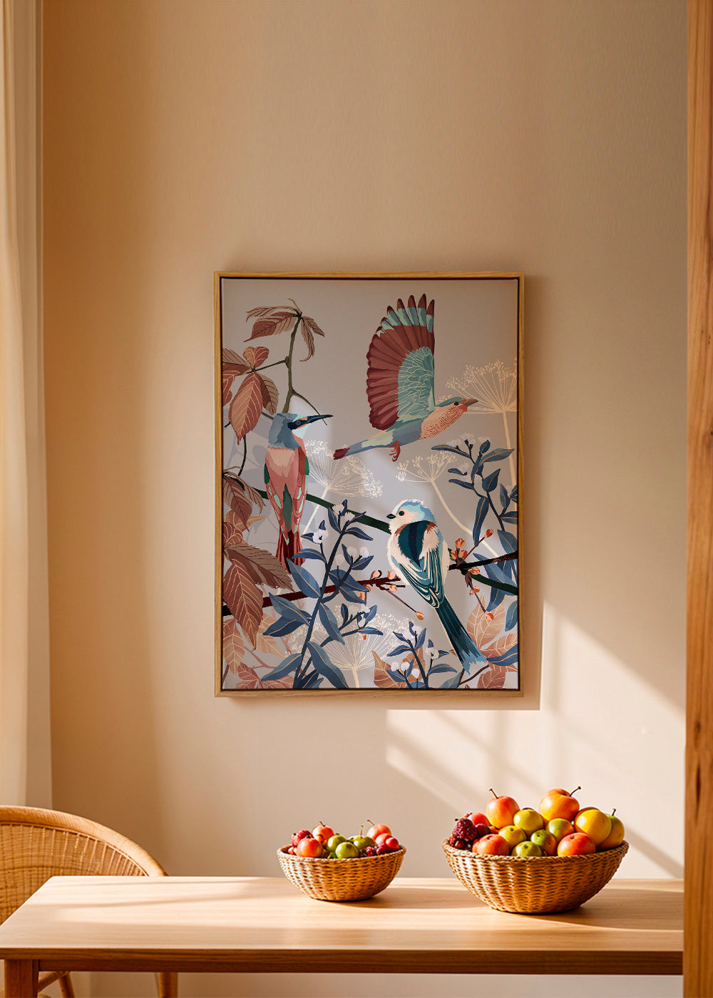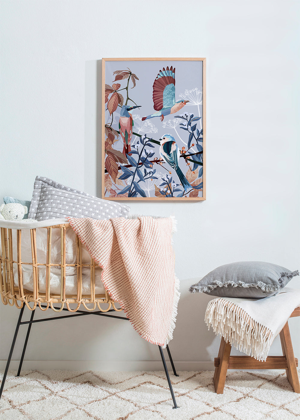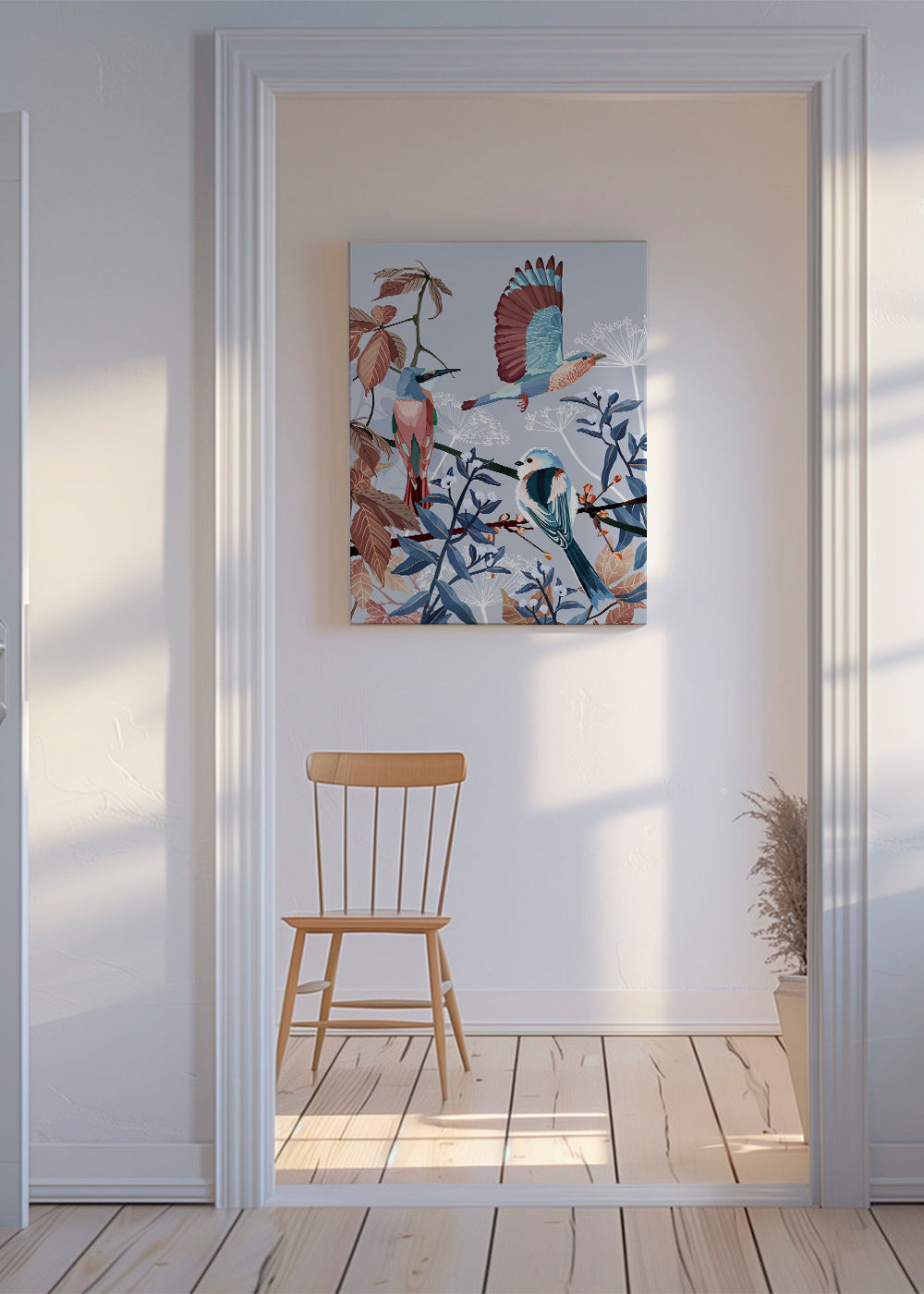 Bonita obra de la serie de cuadros de pájaros, original de Goed Blauw, con tonos azules, y para colocar en posición vertical. Se trata de una obra ideal para los amantes de los animales. Combínala con otros cuadros de animales para crear una composición maravillosa. Las paredes decoradas con cuadros son el no va más.