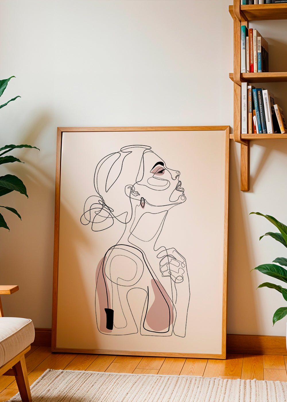 Este cuadro de nuestra selección de cuadros de líneas, creada por Explicit Design, de matices rosas, y de formato vertical. Se trata de una ilustración de estilo sencillo y limpio, combínala con otras ilustraciones para obtener una composición artística. Una pared vacía es una pared triste, pero con unos cuadros le sacaremos una sonrisa.