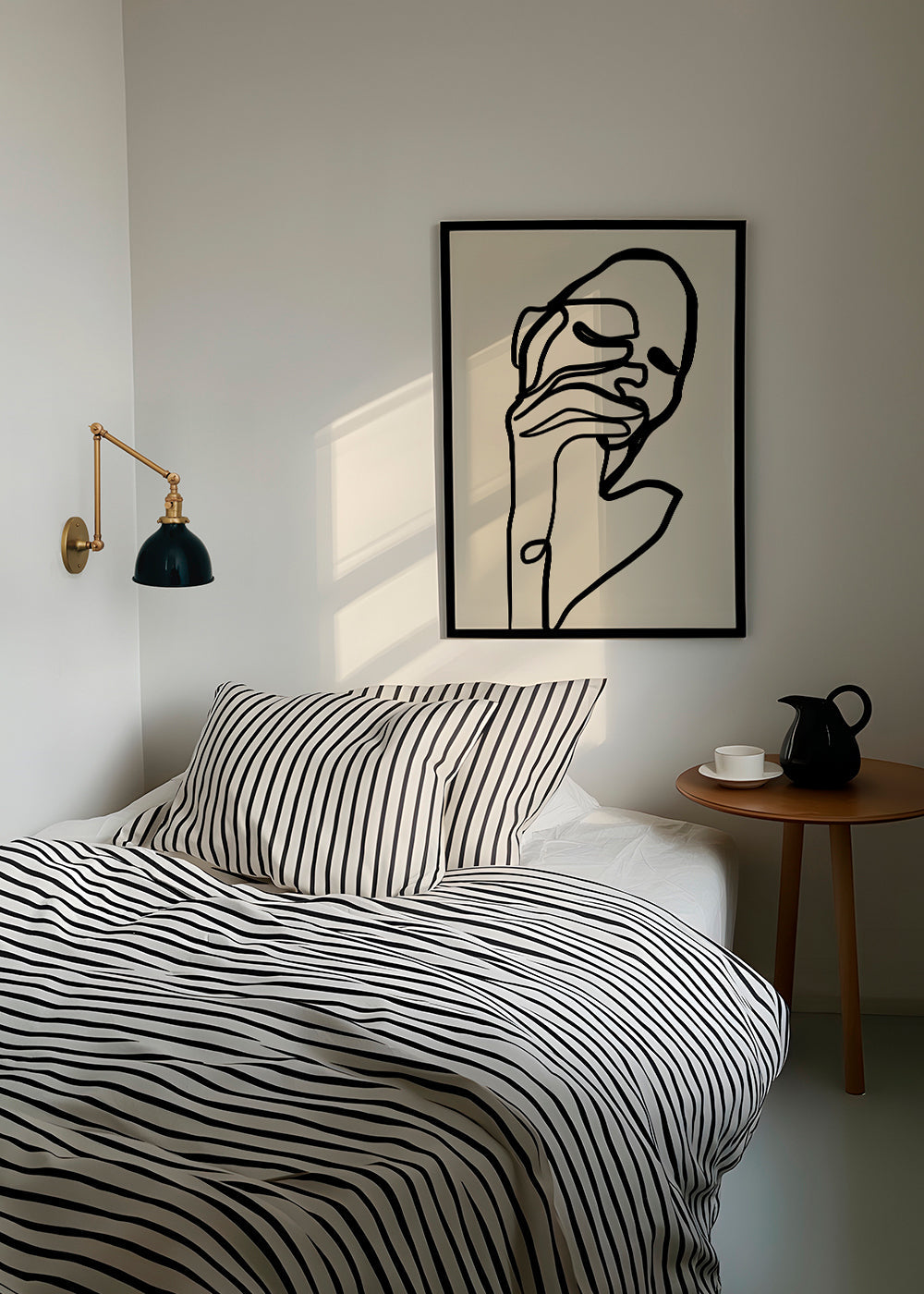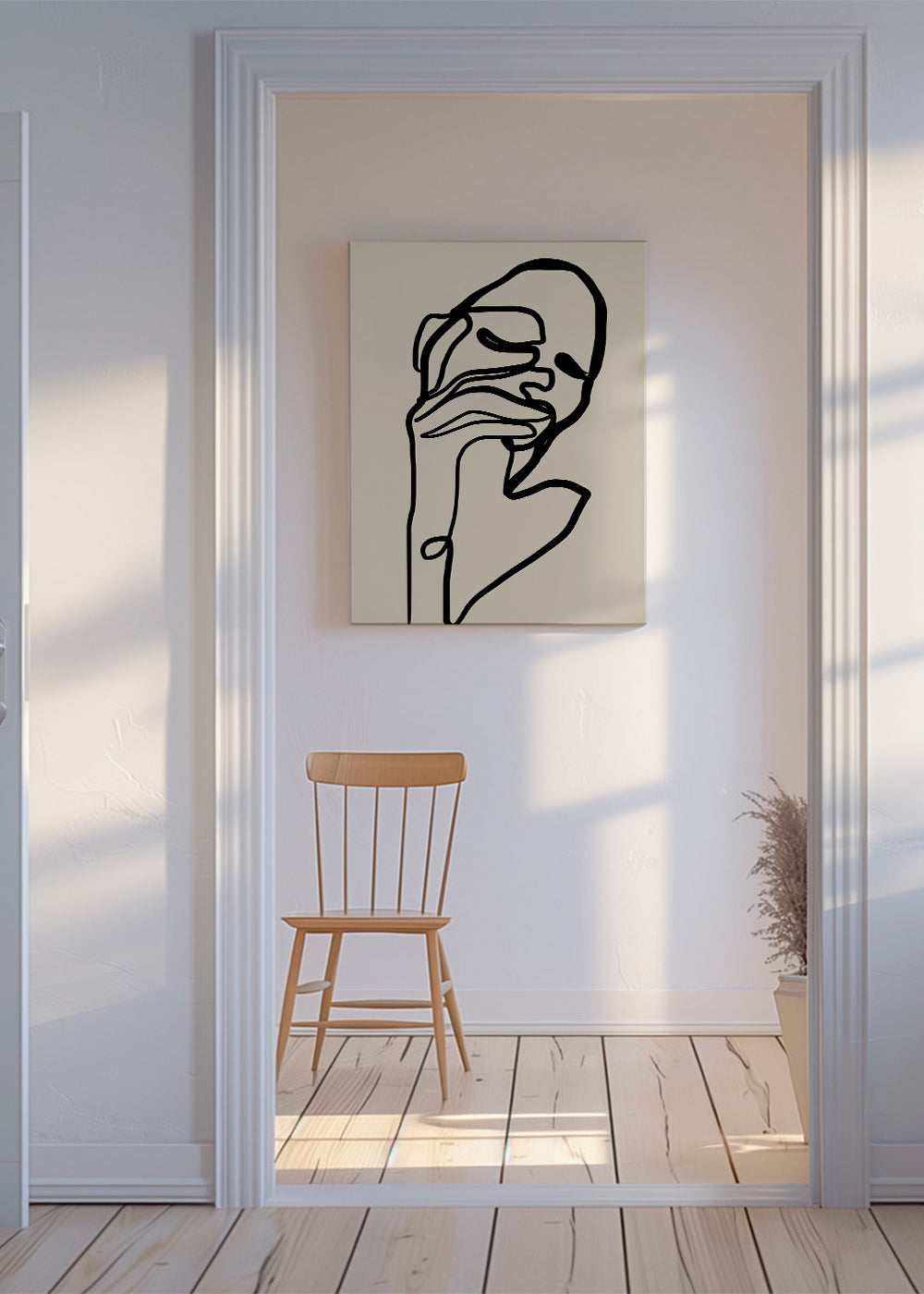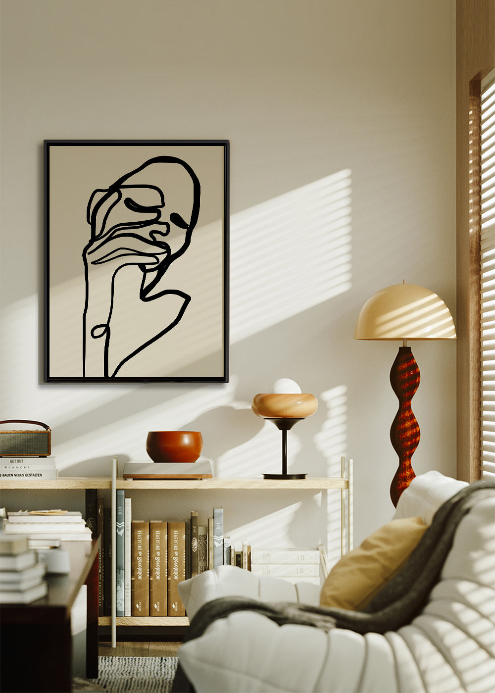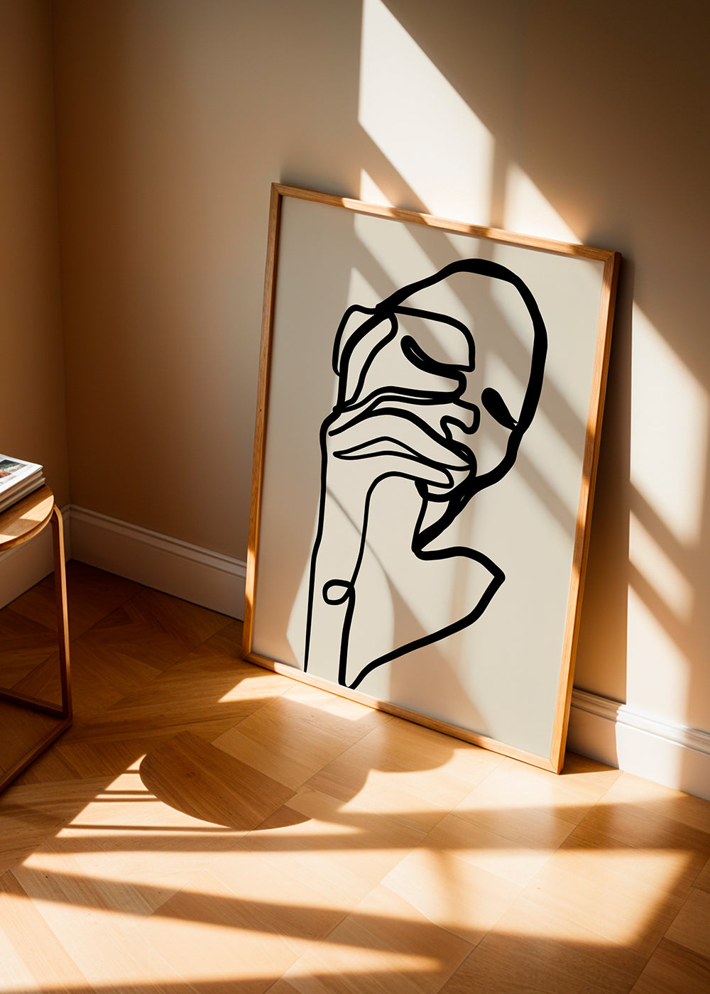 Un póster de nuestro conjunto de cuadros de caras, que nos presenta Sophia Novosel, de matices negros, y de posición vertical. Los cuadros con ilustraciones son ideales para combinar con arte minimalista y abstracto. Dale un toque artístico a tu decoración.