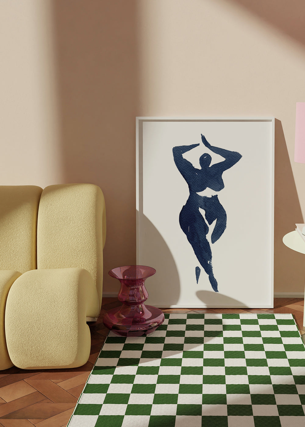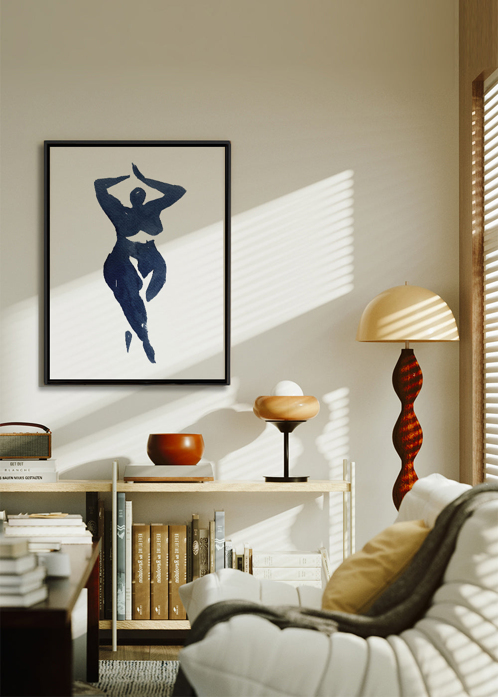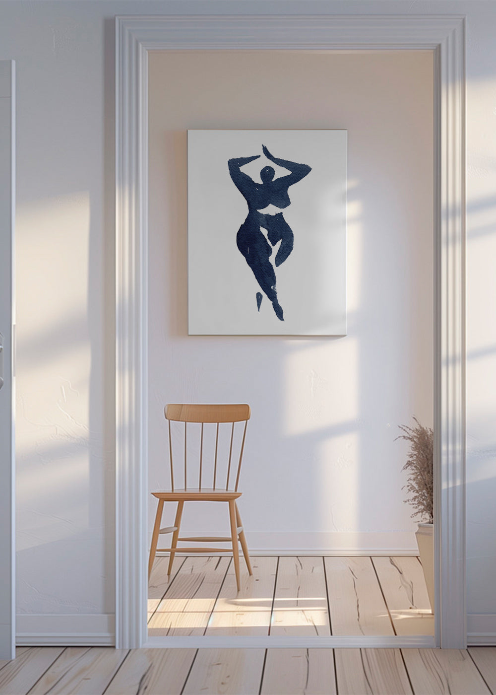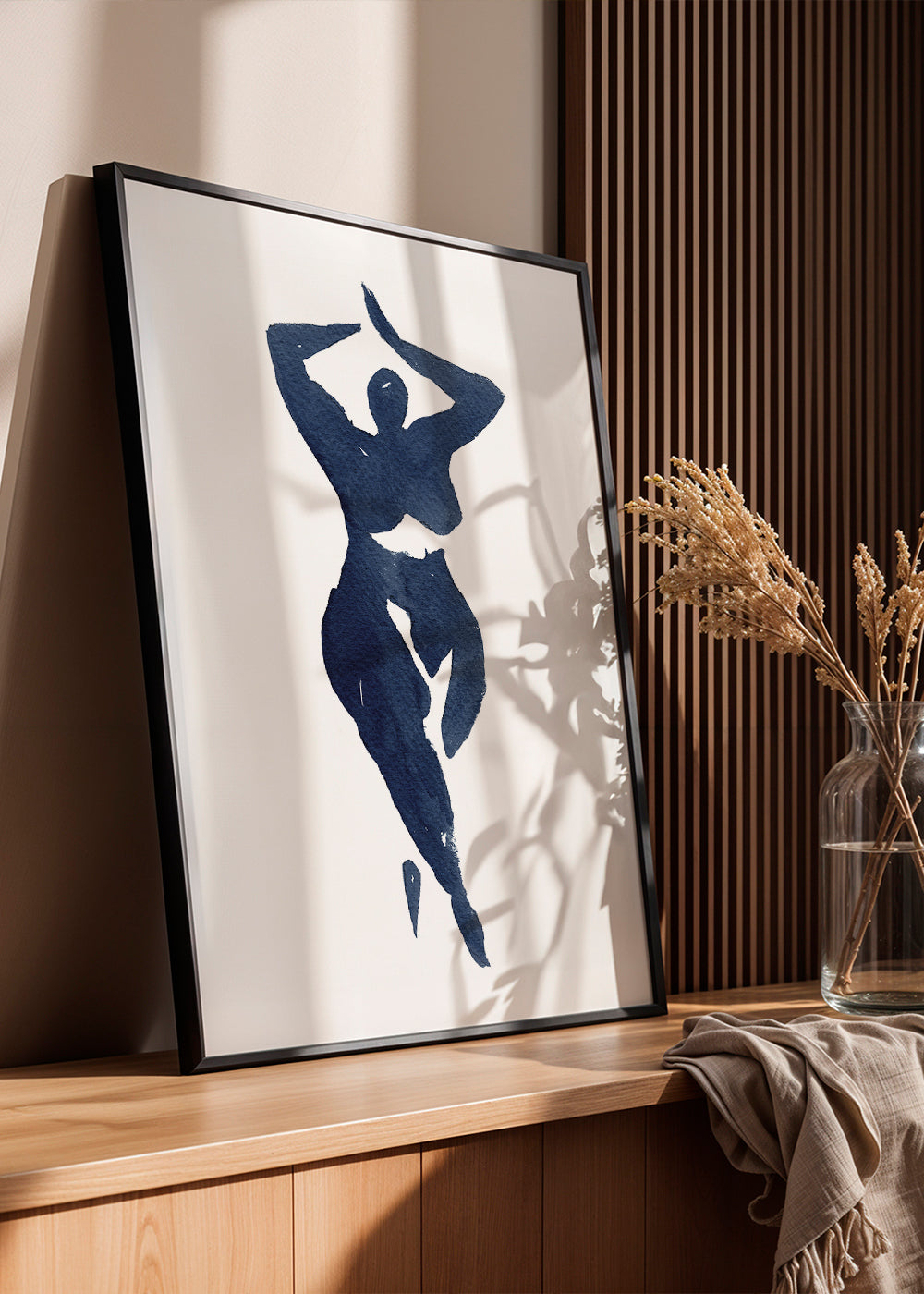 Una lámina de nuestro repertorio de cuadros de cuerpos, perteneciente a la colección de Mike Koubou, con colores azules, y para colgar en posición vertical. Los cuadros con ilustraciones son ideales para combinar con arte minimalista y abstracto. Transforma tus ambientes a partir de las paredes.