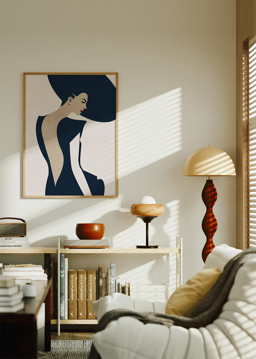 Un póster de nuestra colección de cuadros de mujeres, que nos presenta Kubistika, con tonalidades de colores azules, y de posición vertical. Las láminas con ilustraciones son perfectas para llenar las paredes de creatividad. Las paredes decoradas con cuadros son el no va más.