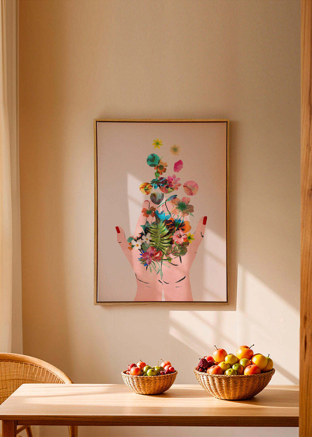 - Enmarcado gratuito: al escoger un marco, recibirás tus cuadros enmarcados y listos para colgar.