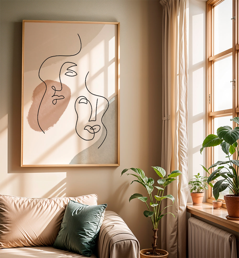 - Enmarcado gratuito: al escoger un marco, recibirás tus cuadros enmarcados y listos para colgar.
