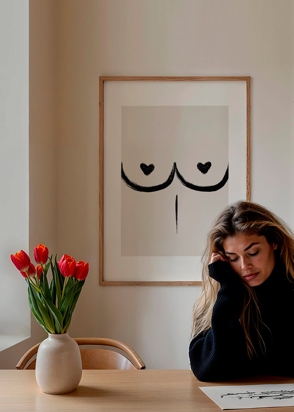 Bonito póster perteneciente a la categoría de cuadros de cuerpos, del artista Alina Buffiere Studio, de matices negros, y de disposición vertical. Las láminas con ilustraciones son perfectas para llenar las paredes de creatividad. Una pared vacía es una pared triste, pero con unos cuadros le sacaremos una sonrisa.