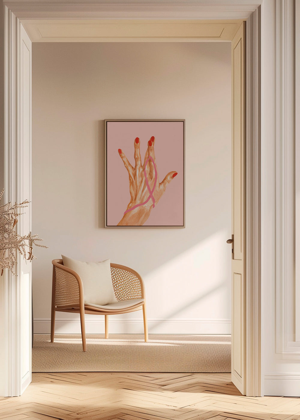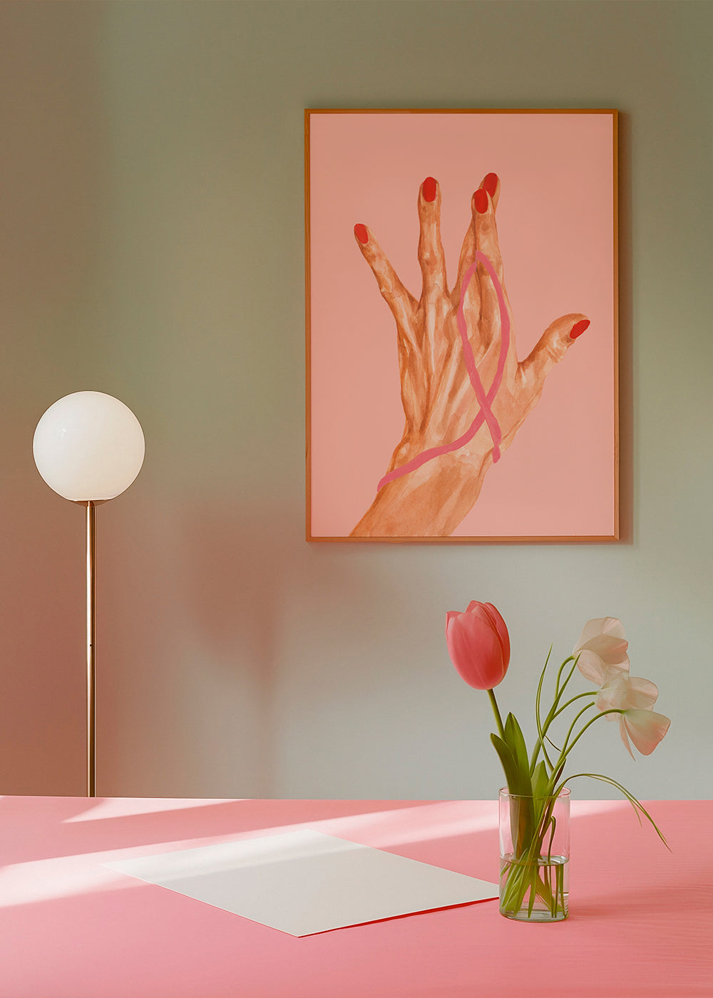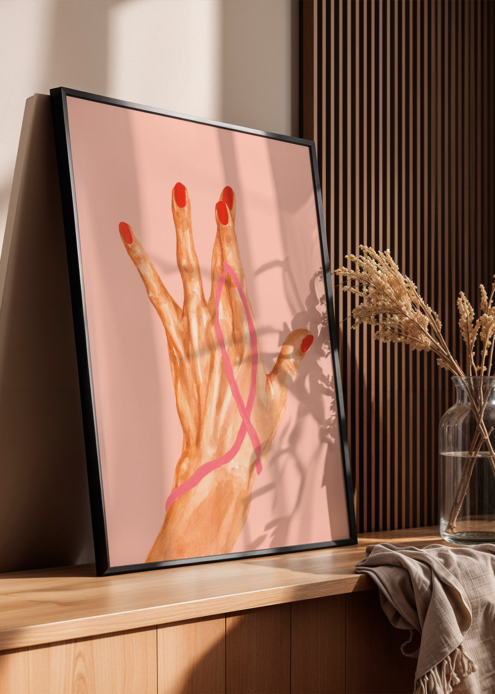 Este diseño de la colección cuadros de manos, concebida por Sophia Novosel, con tonos rojos, y orientada en vertical. Las láminas con ilustraciones son perfectas para llenar las paredes de creatividad. No hay paredes feas o bonitas, hay paredes vacías o paredes llenas.