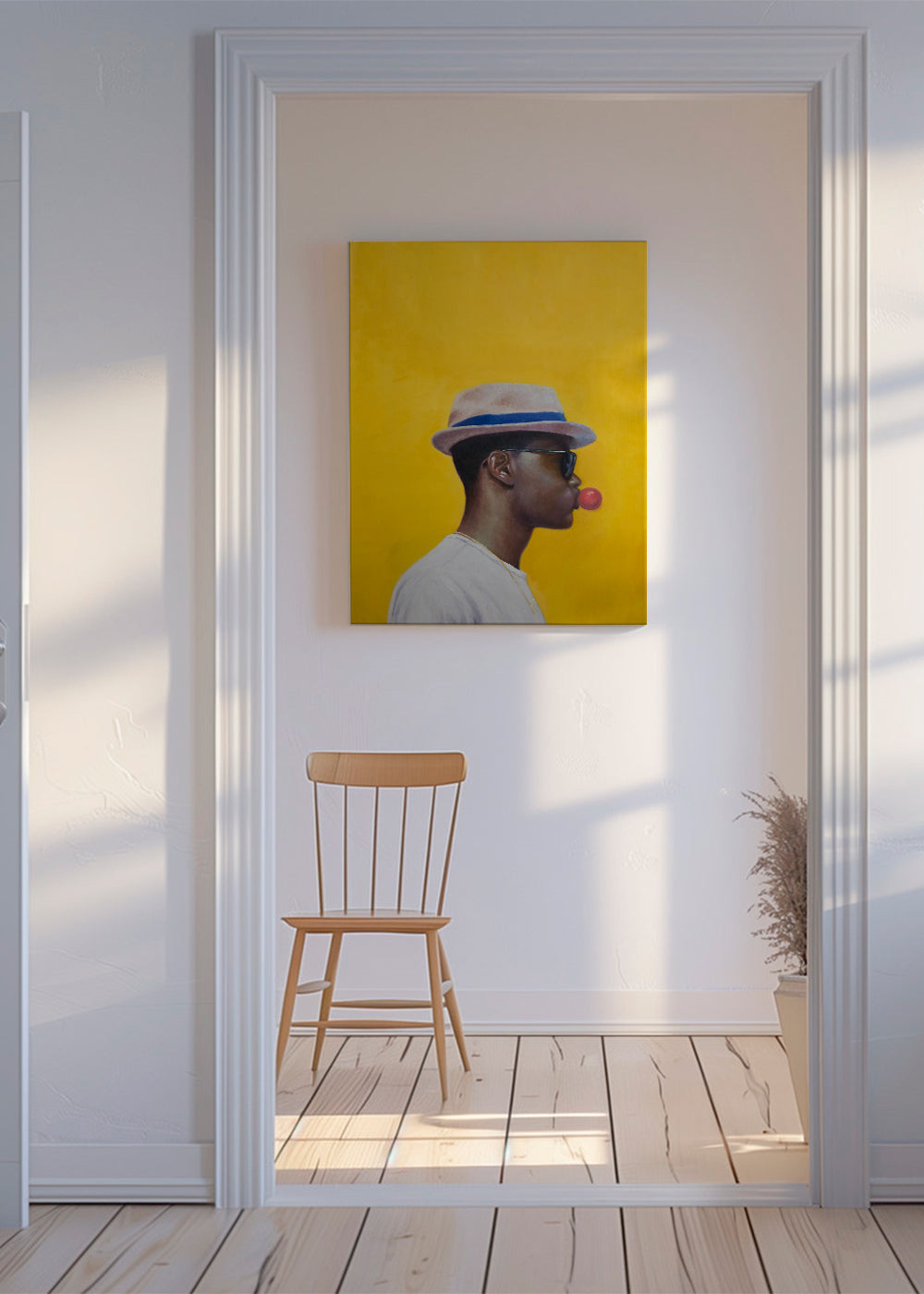Esta lámina de nuestra categoría de cuadros de caras, original de Alexander Grahovsky, con toques amarillos, y ideal para poner en posición vertical. Se trata de una ilustración de estilo sencillo y limpio, combínala con otras ilustraciones para obtener una composición artística. Crea un rincón único.