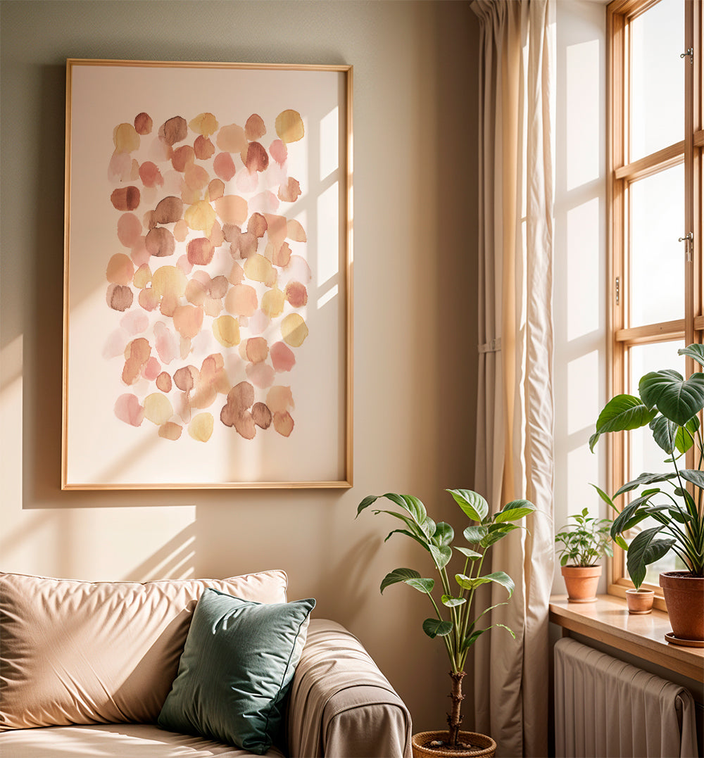 - Enmarcado gratuito: al escoger un marco, recibirás tus cuadros enmarcados y listos para colgar.