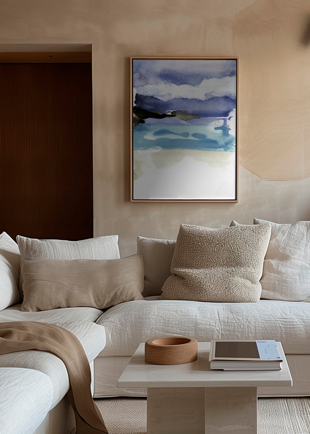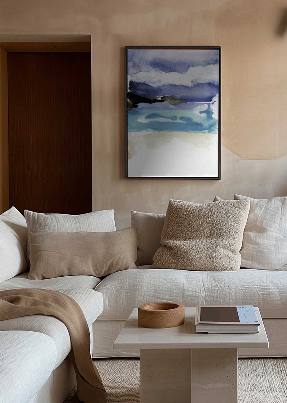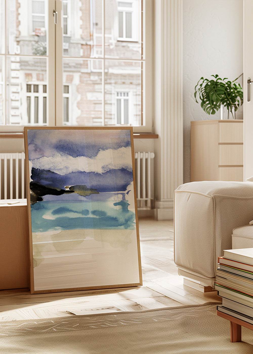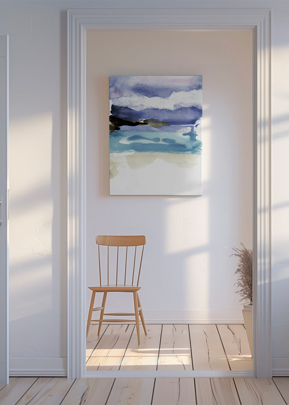 Un cuadro del estilo de nuestros cuadros de playas y costas, concebida por Mercedes Lopez Charro, en tonalidades de colores azules, y para colocar en posición vertical. La naturaleza en su máximo esplendor, los cuadros con paisajes transmiten mucha calma. Puro arte y diseño.