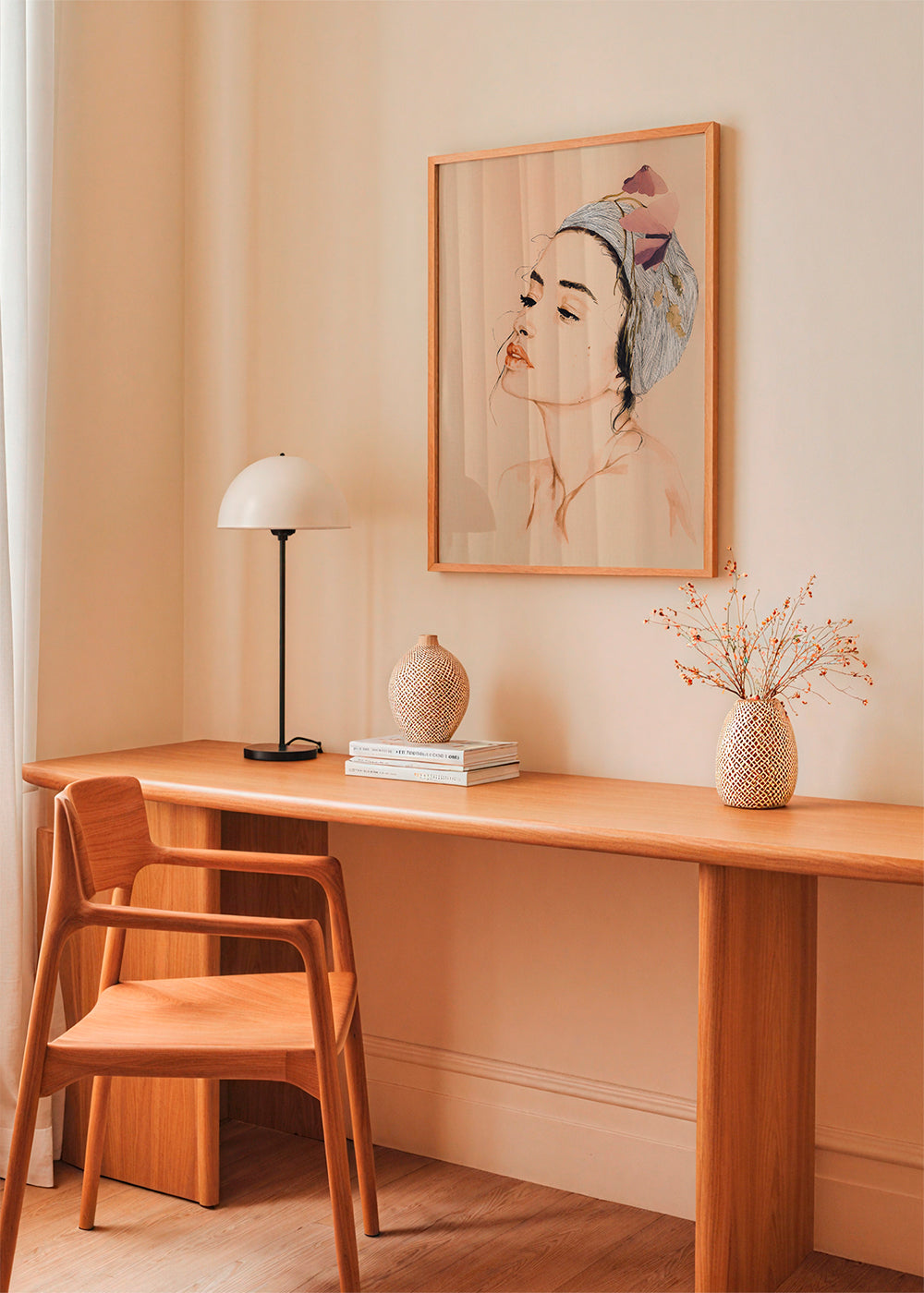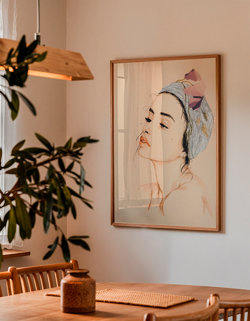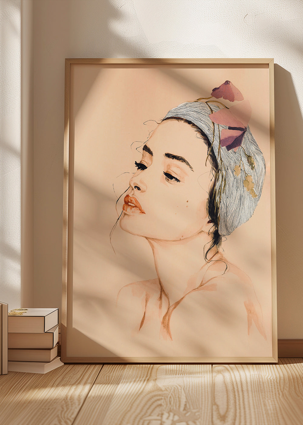 Esta lámina de nuestro conjunto de cuadros de mujeres, hecha por Sophia Novosel, con tonalidades de colores naranjas, y para colgar en posición vertical. Se trata de una ilustración de estilo sencillo y limpio, combínala con otras ilustraciones para obtener una composición artística. Deja que tus paredes cuenten historias.