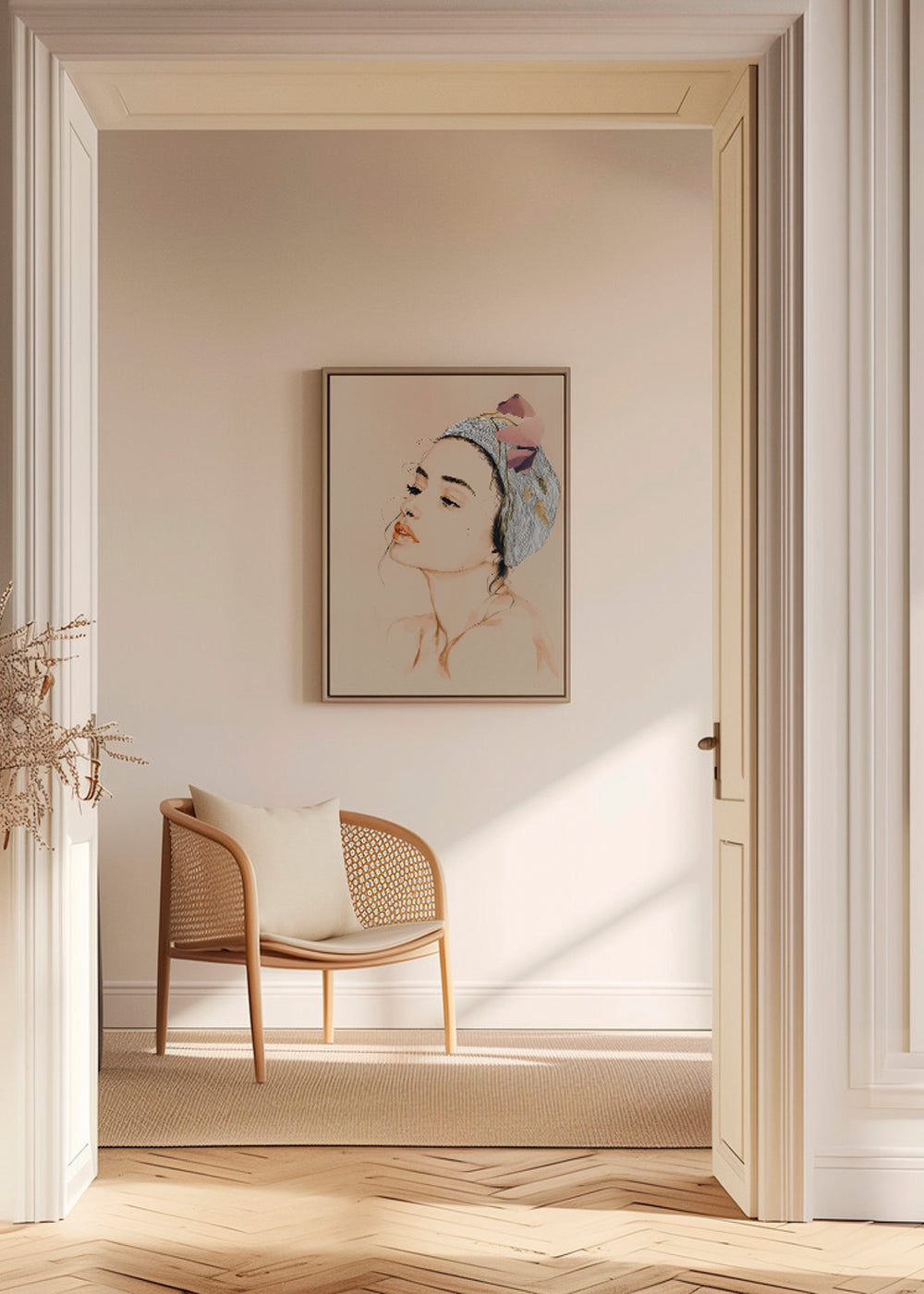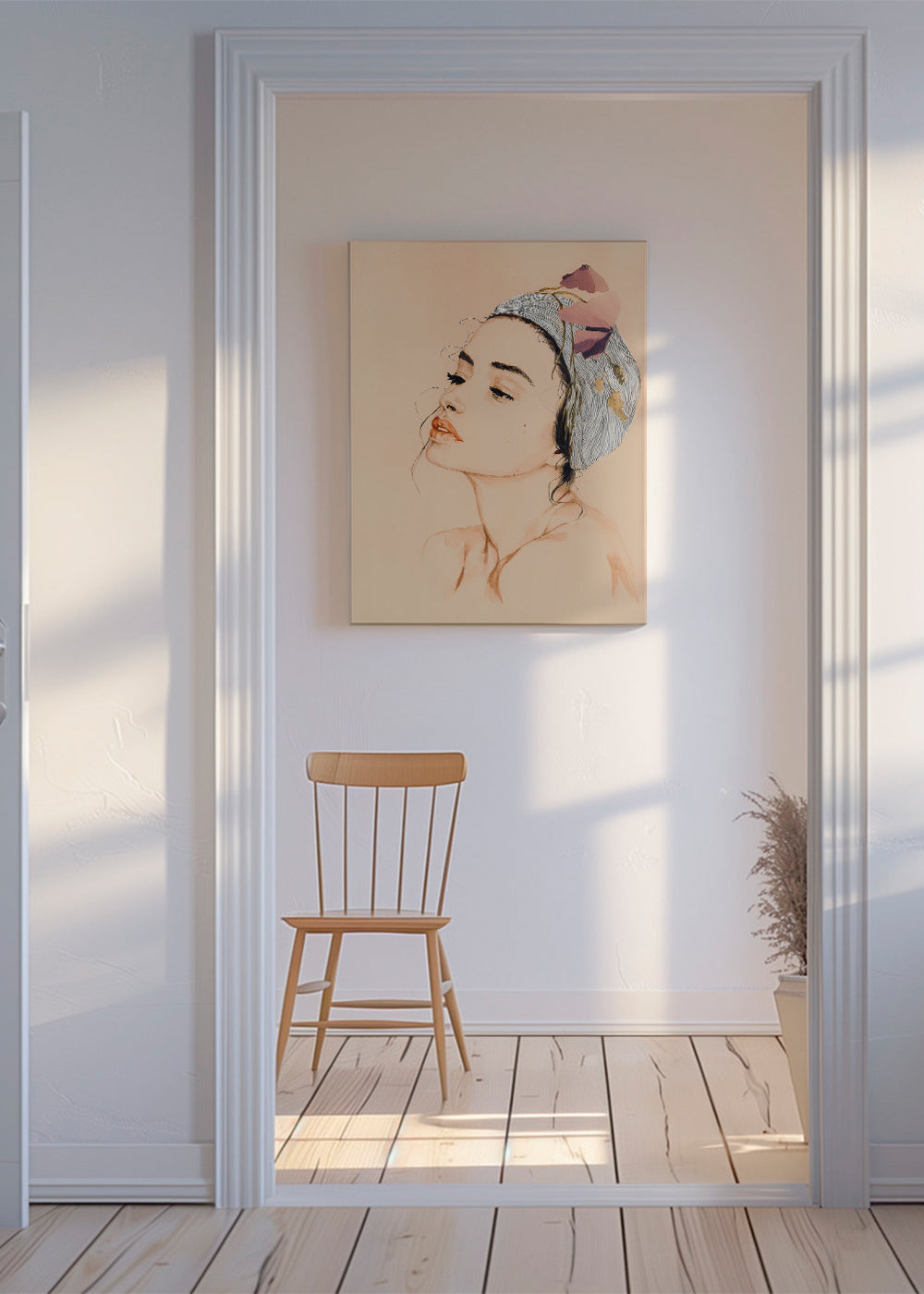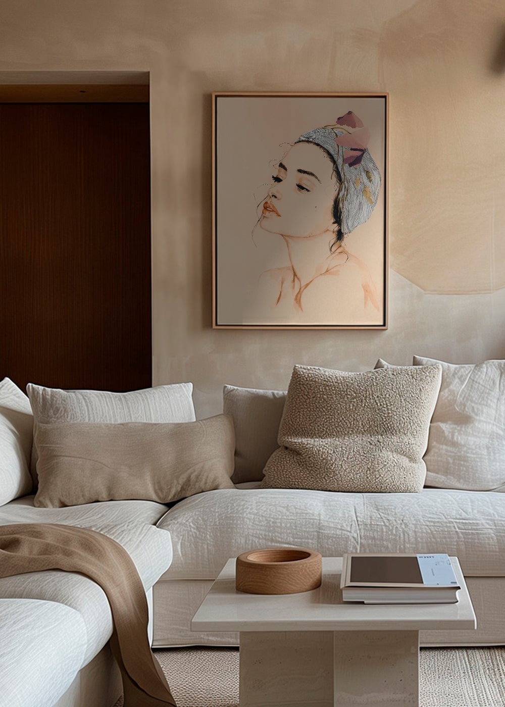 Esta lámina de nuestro conjunto de cuadros de mujeres, hecha por Sophia Novosel, con tonalidades de colores naranjas, y para colgar en posición vertical. Se trata de una ilustración de estilo sencillo y limpio, combínala con otras ilustraciones para obtener una composición artística. Deja que tus paredes cuenten historias.