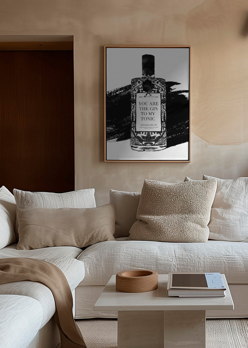 Cuadro decorativo con una ilustración de una botella de ginebra