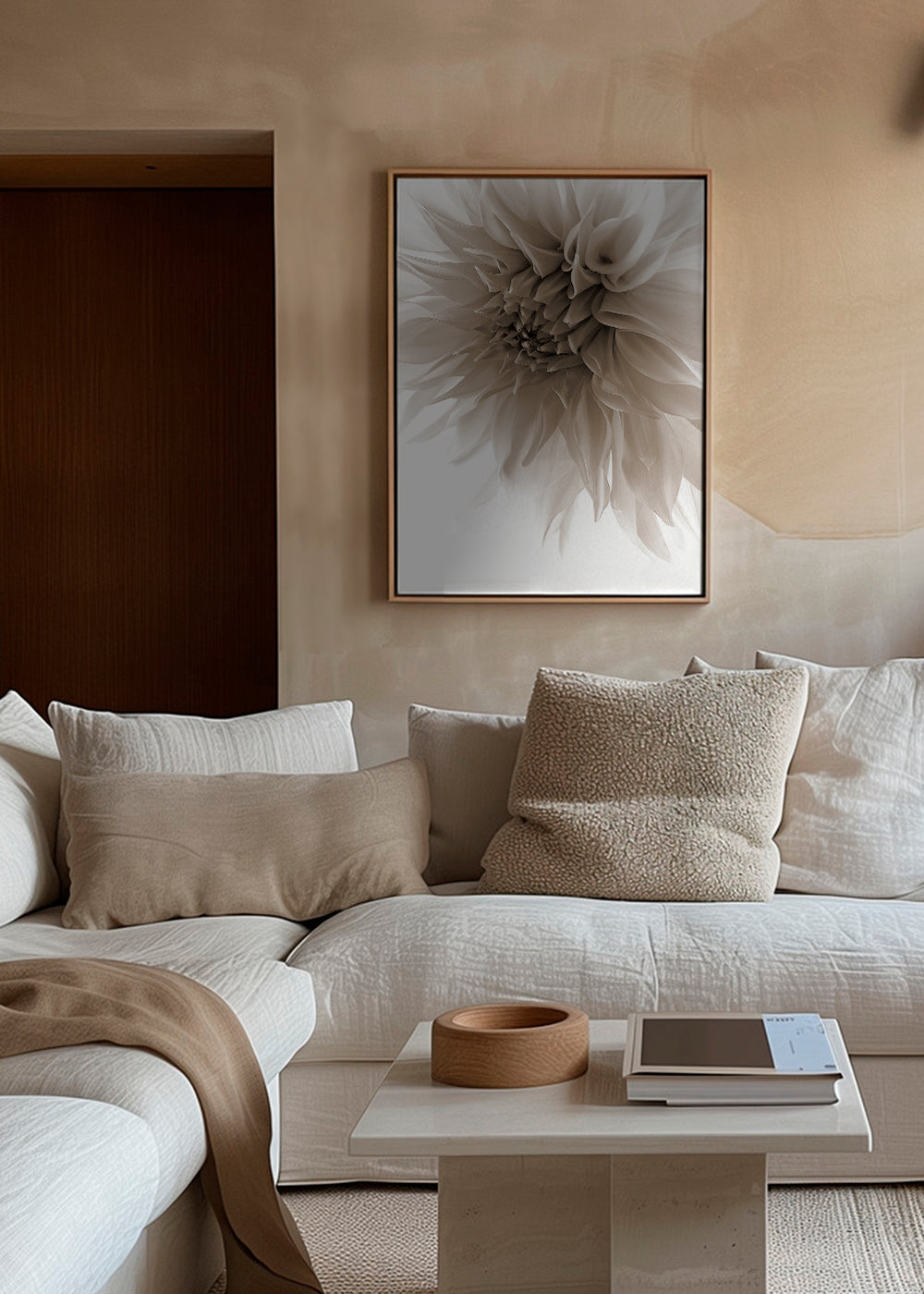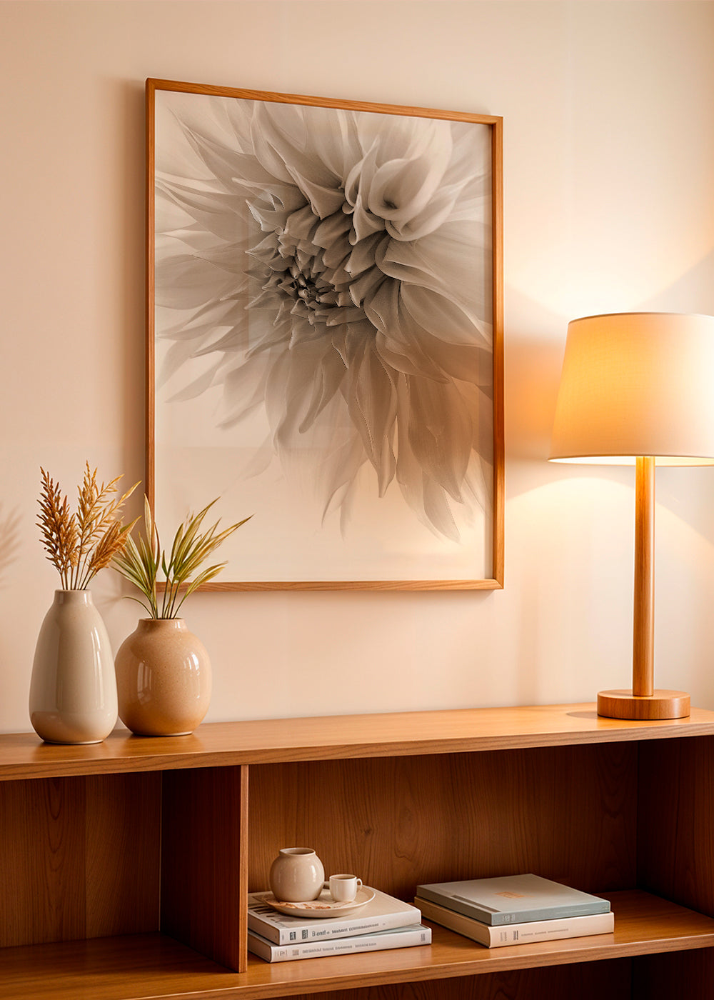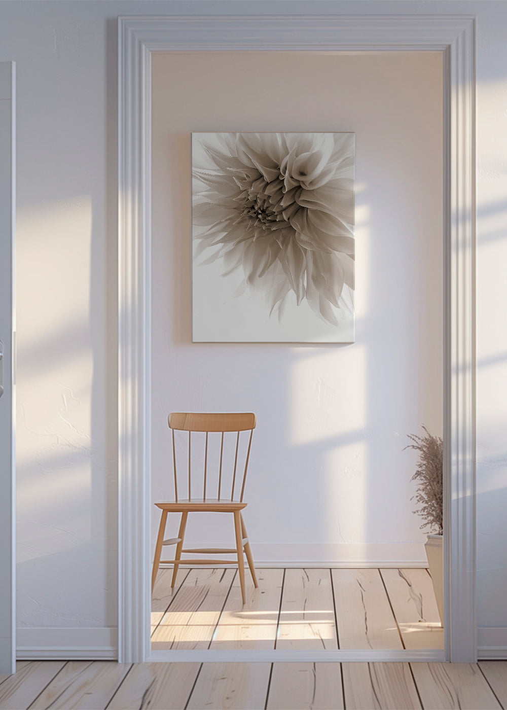 Bonito póster de nuestra selección de cuadros de flores y plantas, de matices blancos, y en formato vertical. Llena tus paredes de energía positiva con este diseño mindfulness. Los cuadros relajantes aportan calidez y armonía al hogar. Dales vida a las paredes de tu casa.