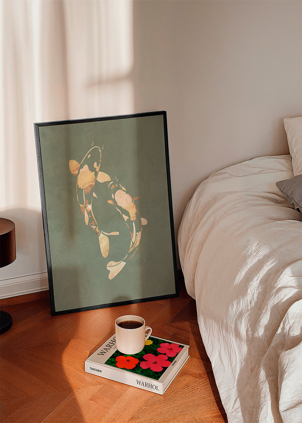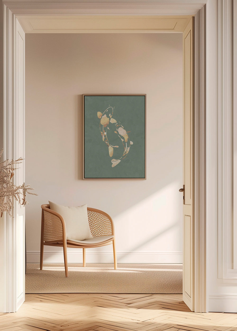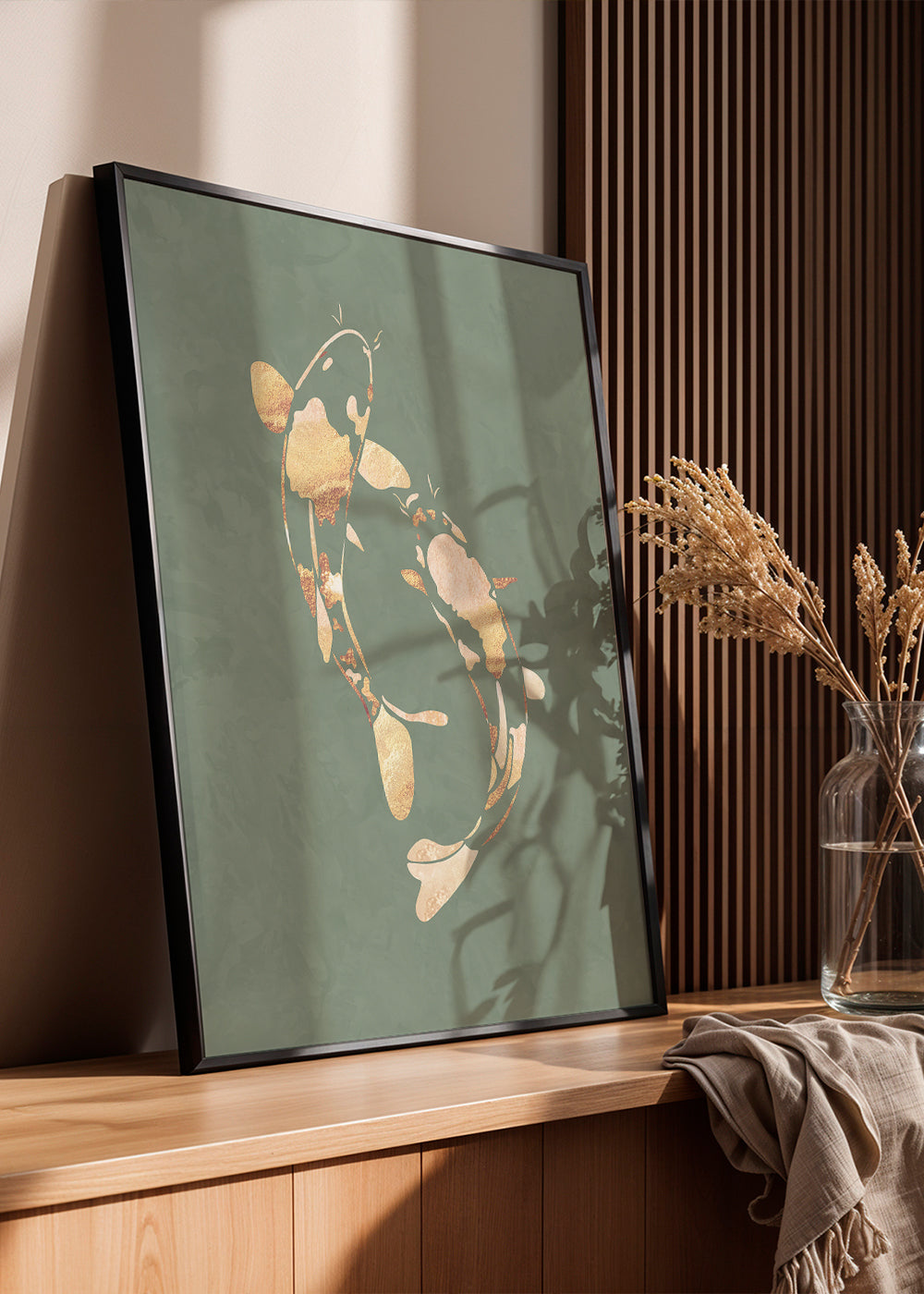 Cuadro para el dormitorio Gold Koi Fish sage green 1