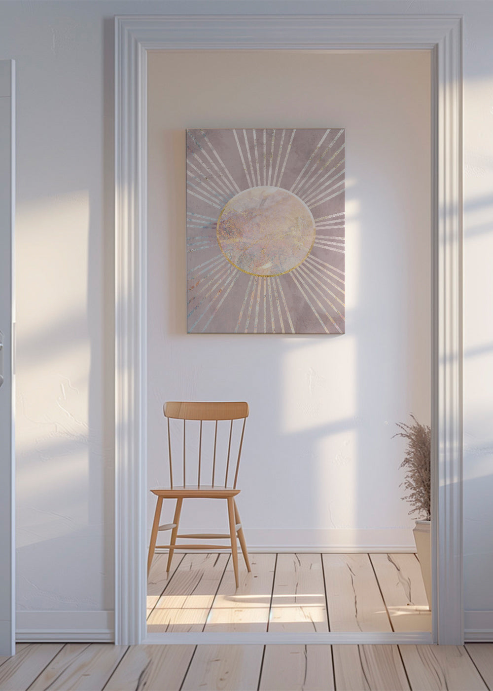 Esta pieza de la serie de cuadros de amaneceres y atardeceres, hecha por Sarah Manovski Art, con colores rosas, y para colgar en posición vertical. Los cuadros con ilustraciones dan un toque original a la decoración del hogar. Déjate cautivar por el arte.