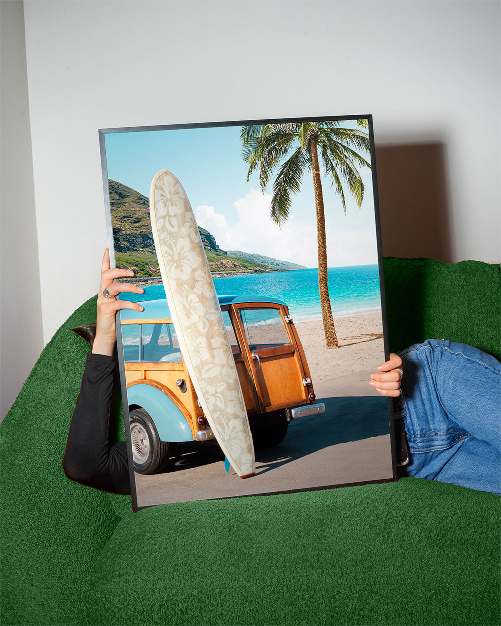 Bonito diseño de nuestra categoría de cuadros de surf, de la mano de Gal Design, con matices de tonos azules, y en formato vertical. La tranquilidad y libertad que transmiten los cuadros de paisajes es única. Cambia el look de tus estancias añadiendo arte.