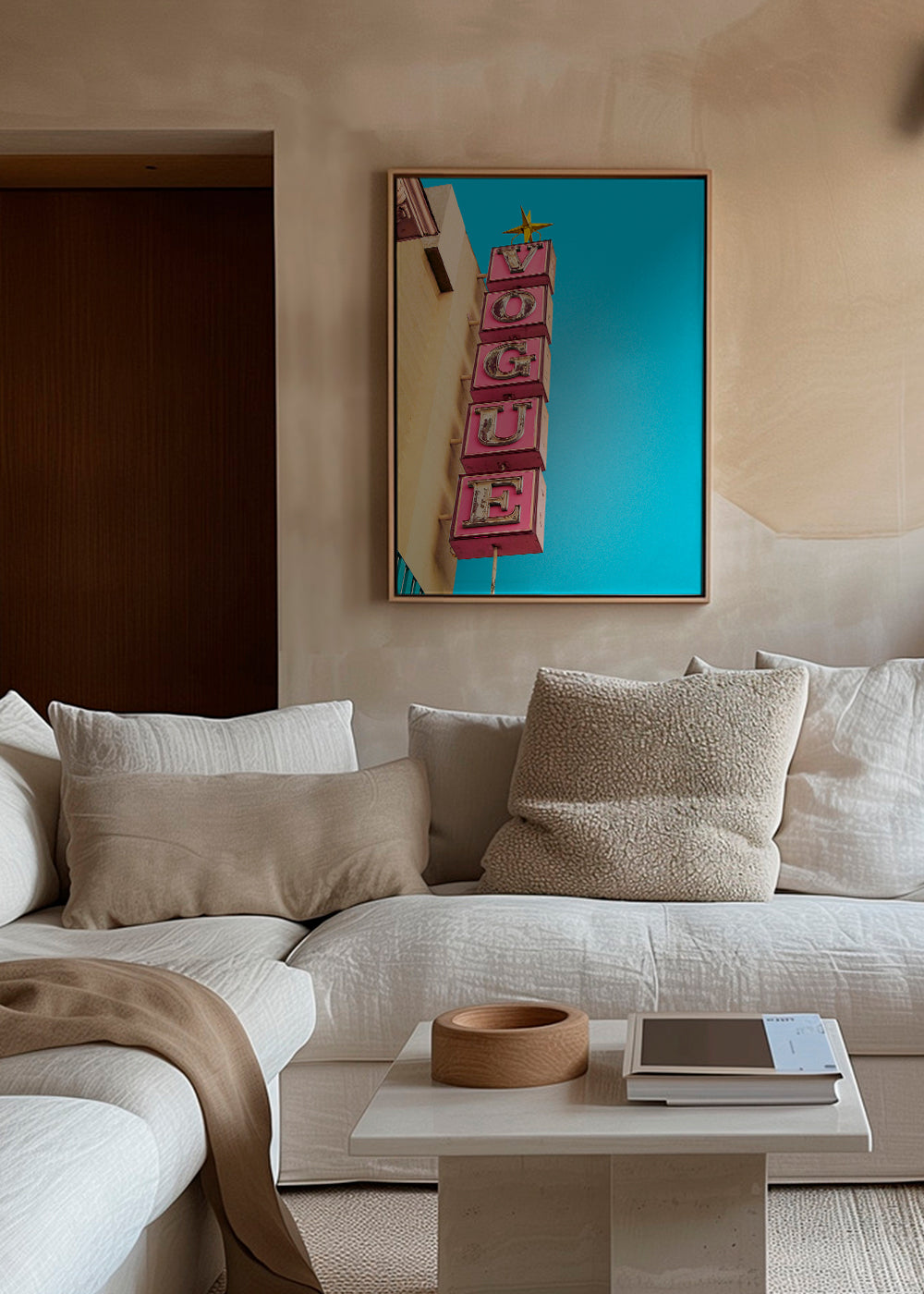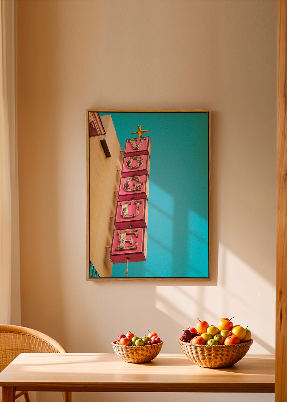 Una obra de la colección cuadros y láminas vogue, de 1x, de matices azules, y orientada en vertical. Esta fotografía es una opción ideal para combinar con otros cuadros con fotografías y crear una galería de pared. Un nuevo look en tus paredes puede dar un aire nuevo a toda la decoración.