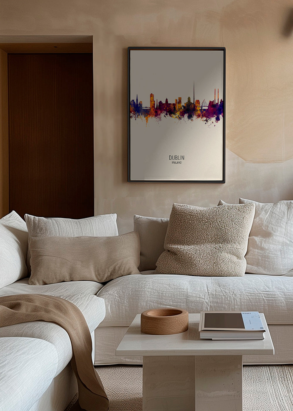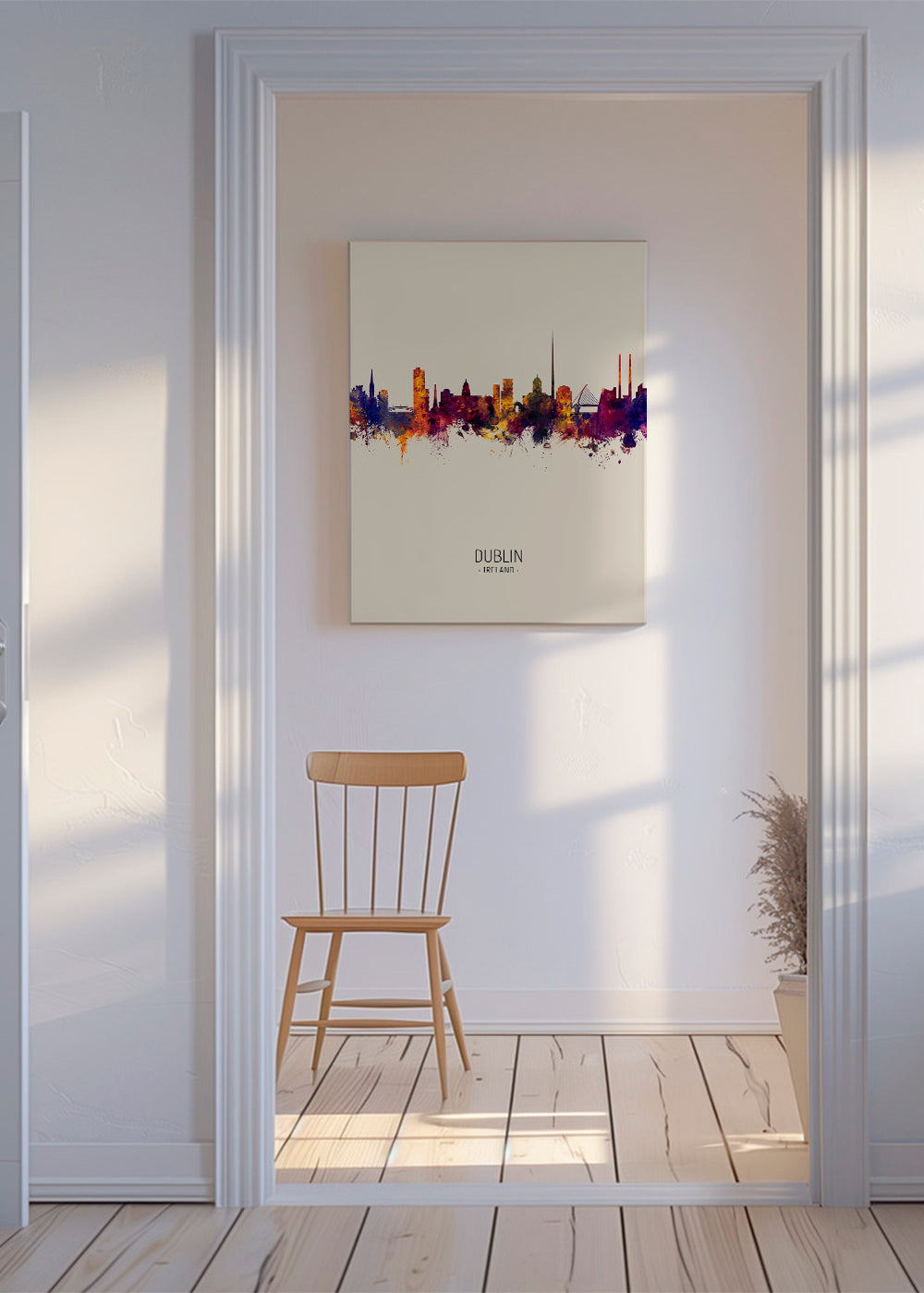 Bonito póster de nuestro repertorio de cuadros de skylines, concebida por Michael Tompsett, en tonos multicolor, y orientada en vertical. Nuestros cuadros de mapas y ciudades son ideales para los amantes de la arquitectura y las urbes. Viste las paredes de tu hogar.