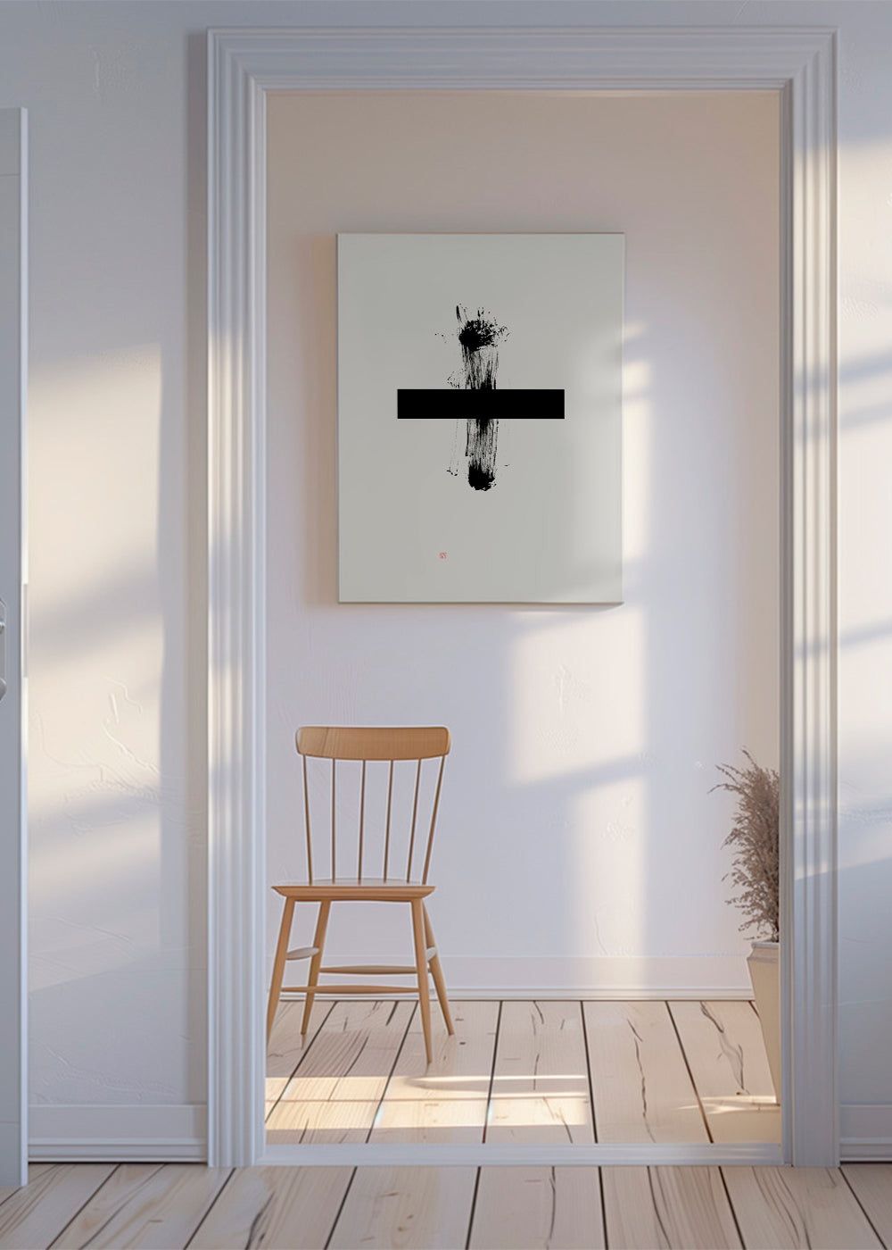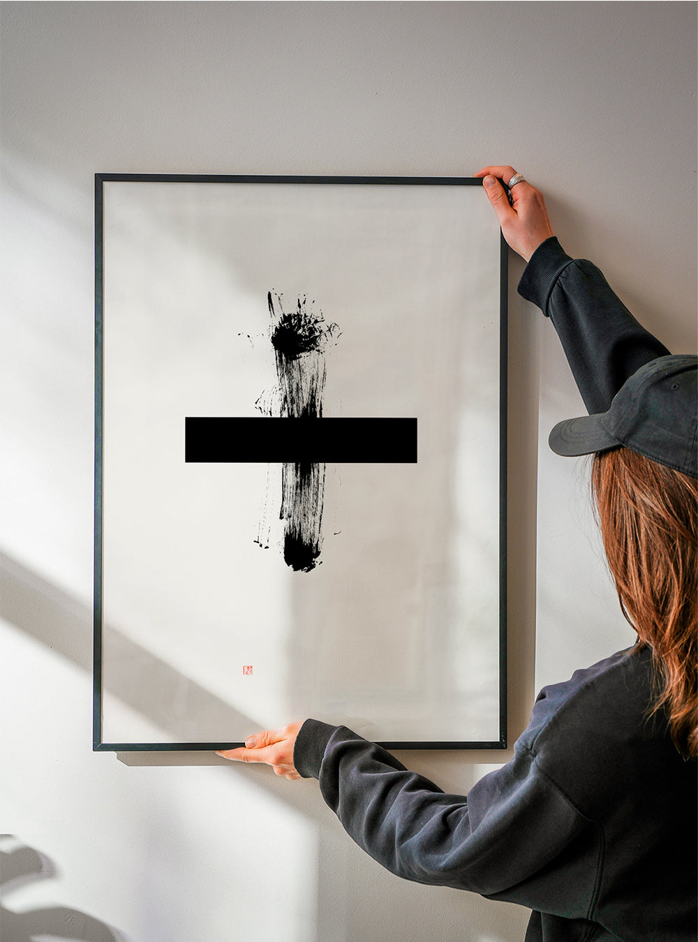 Un póster de la colección cuadros japoneses, creada por Thoth Adan, con toques monocromáticos, y con orientación vertical. Los cuadros geométricos son una buena opción para decorar espacios modernos y vanguardistas. Un hogar se viste por las paredes.