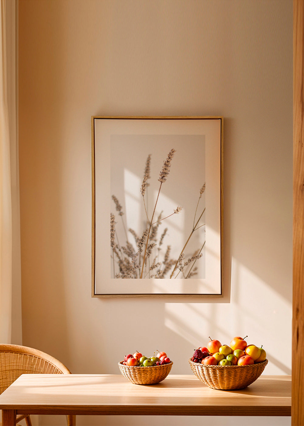- Enmarcado gratuito: al escoger un marco, recibirás tus cuadros enmarcados y listos para colgar.