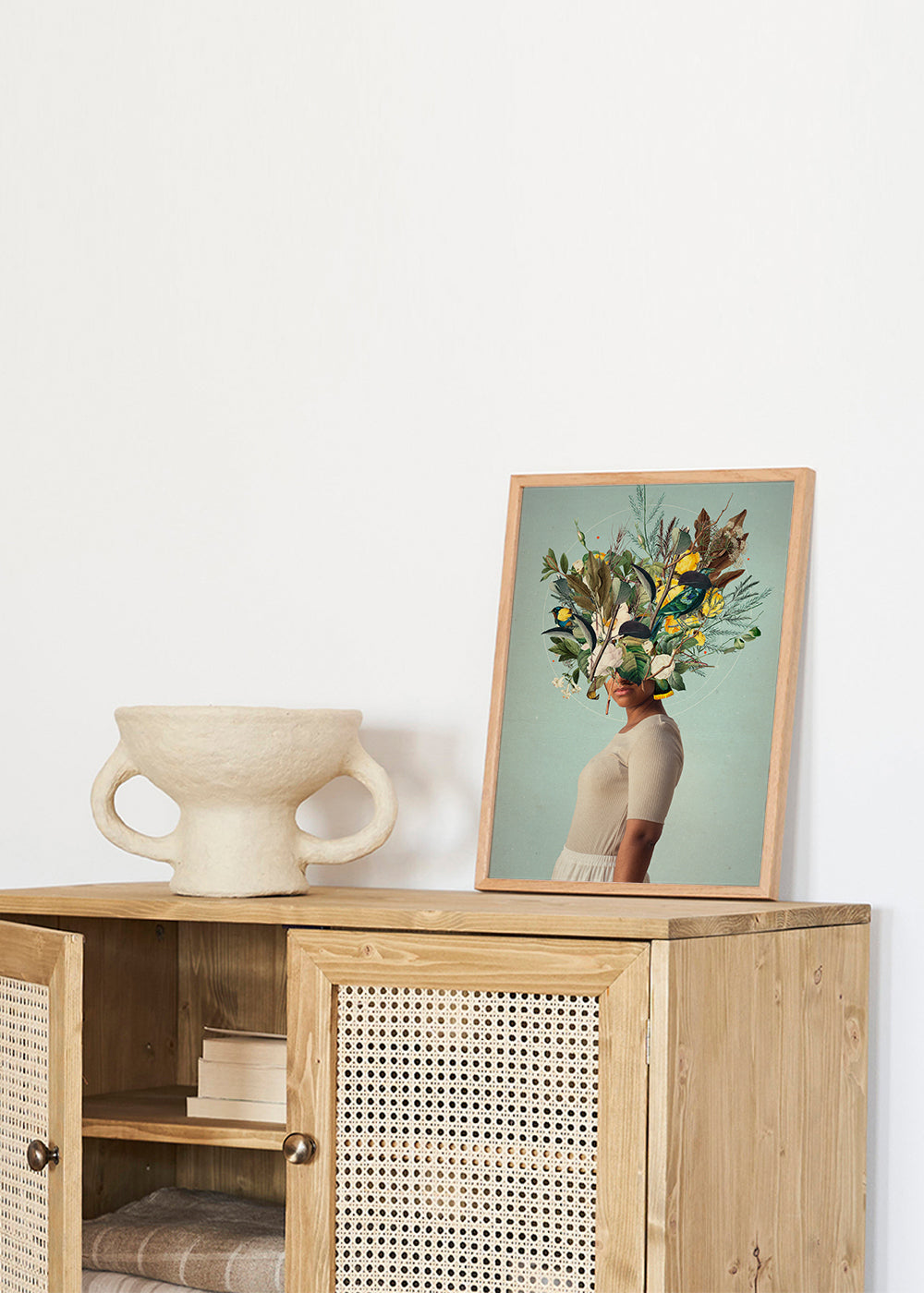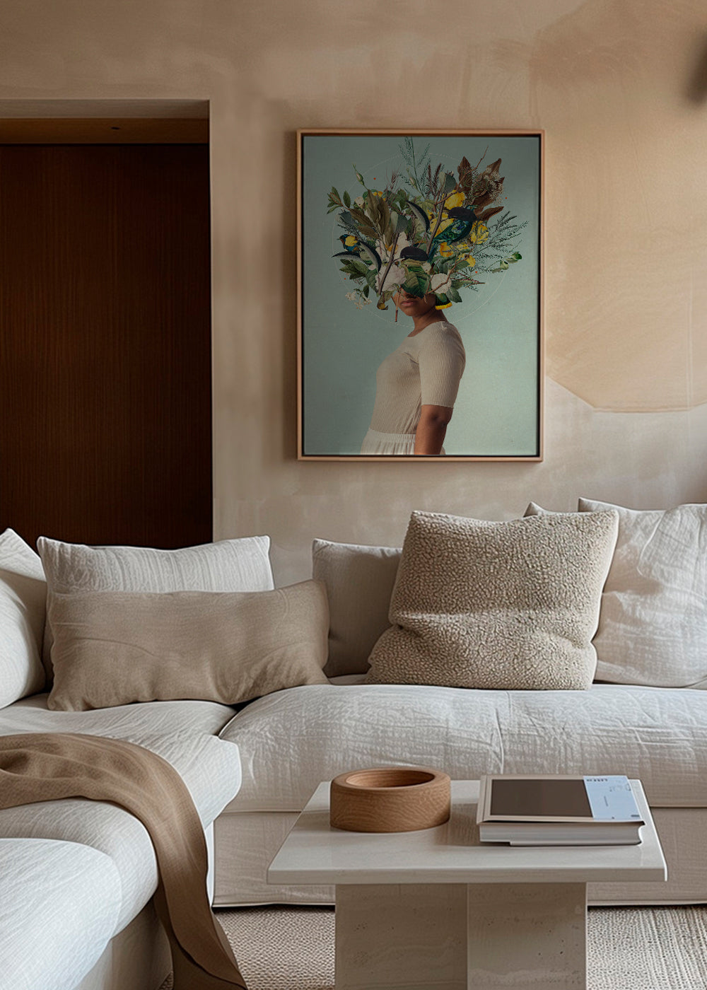 Un cuadro de nuestro repertorio de cuadros de mujeres, que nos presenta Frank Moth, con colores verdes, y de posición vertical. Relájate y deja que tus paredes acompañen esa calma. Esta obra es ideal para combinar con otras láminas relajantes. Dale un toque artístico a tu decoración.