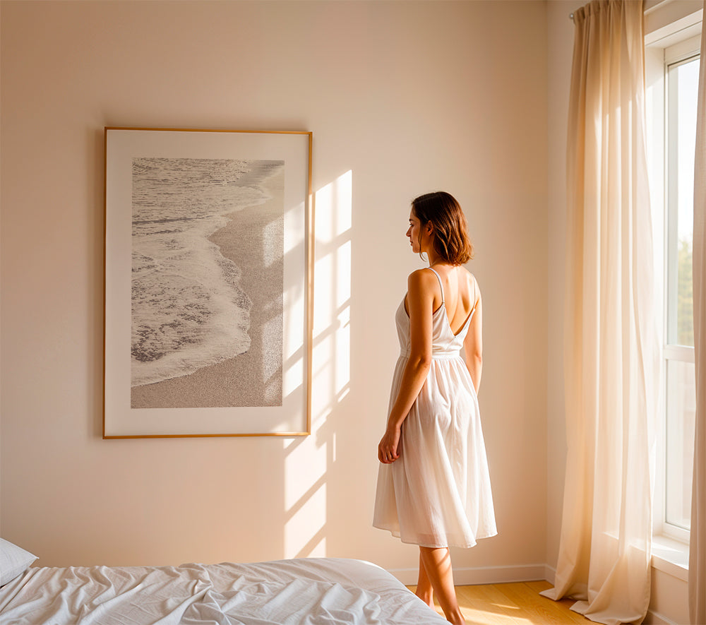 - Enmarcado gratuito: al escoger un marco, recibirás tus cuadros enmarcados y listos para colgar.