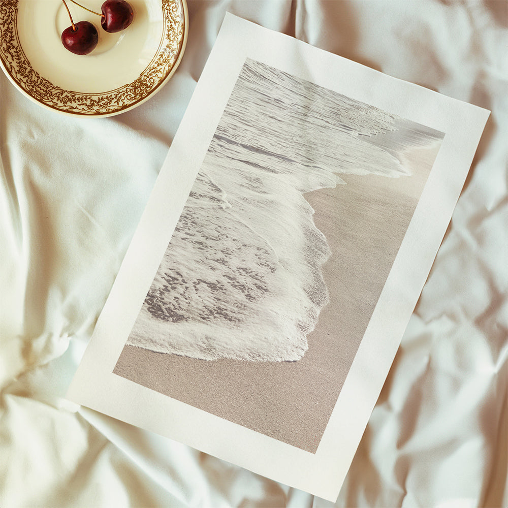 Un póster de nuestro conjunto de cuadros de playas y costas, con colores marrones, y para colocar en posición vertical. Se trata de una obra que relaja solo con mirarla. Los cuadros relajantes son ideales para cualquier espacio del hogar. Las paredes decoradas con cuadros son el no va más. El margen blanco que envuelve a la imagen potencia la expresividad de la obra.