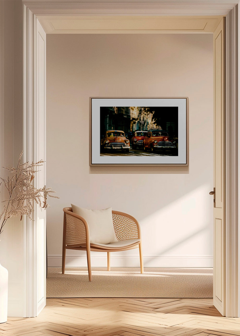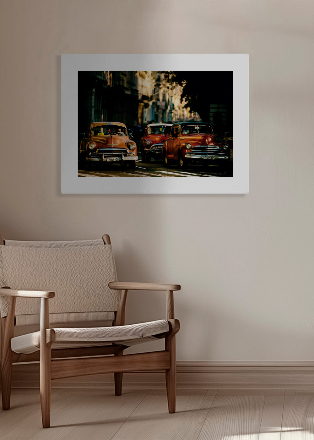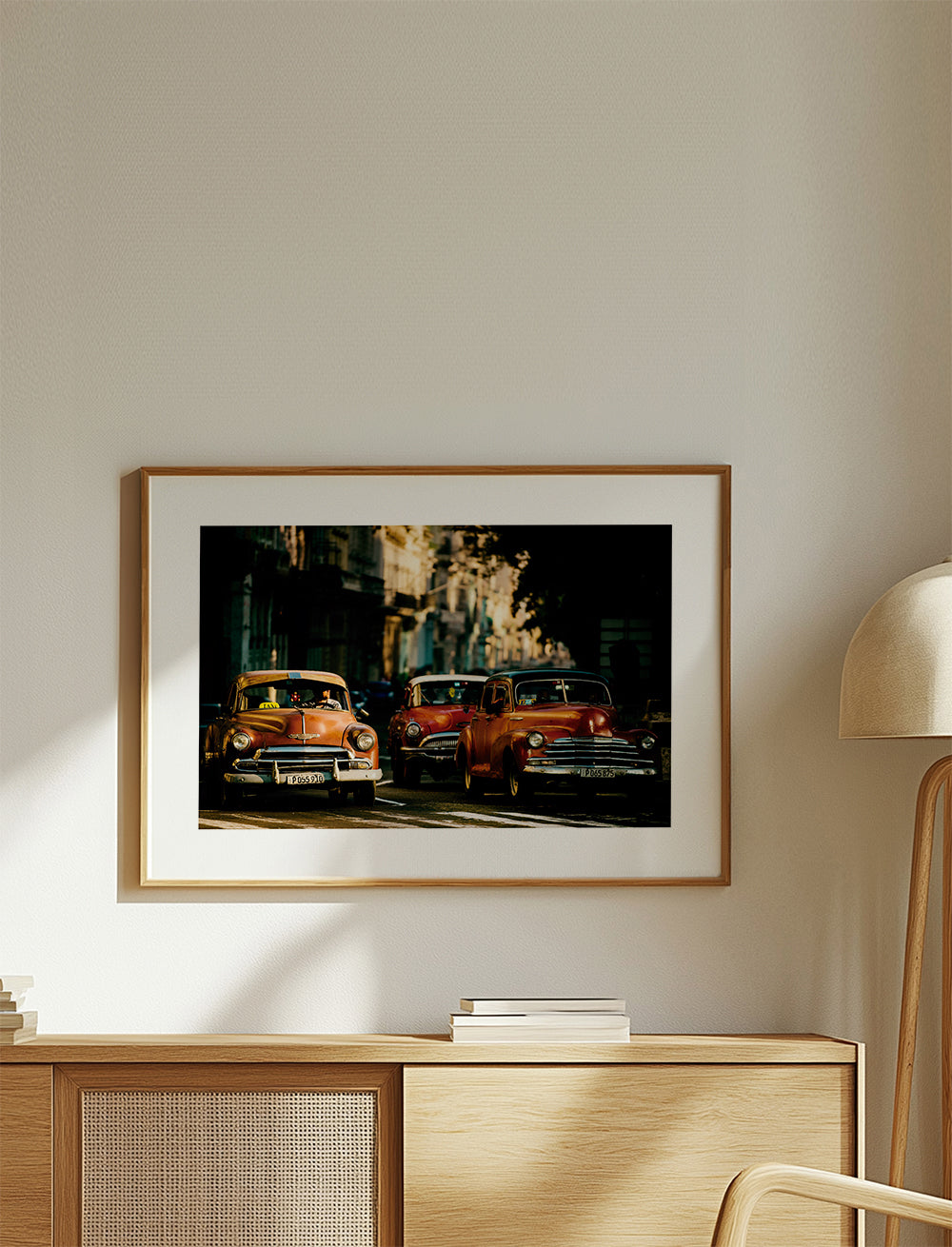 Bonita lámina de nuestro conjunto de cuadros de coches, en tonos amarillos, y para colgar en posición horizontal. Esta fotografía es una opción ideal para combinar con otros cuadros con fotografías y crear una galería de pared. Crea un rincón único. El diseño incluye un margen blanco que añade contraste a la obra.