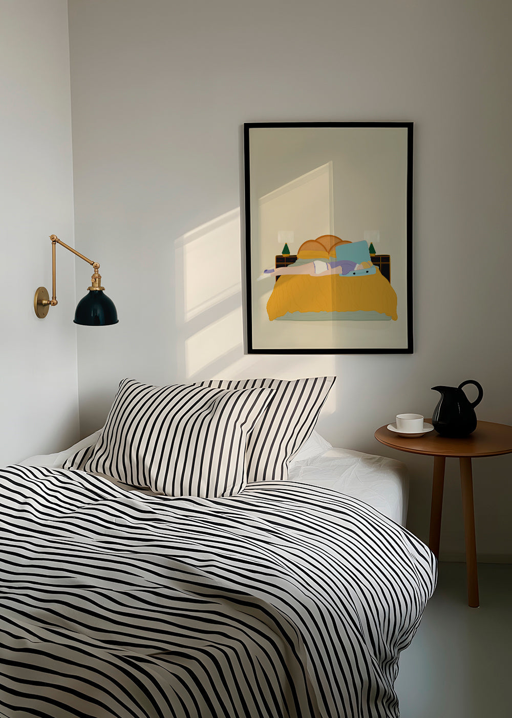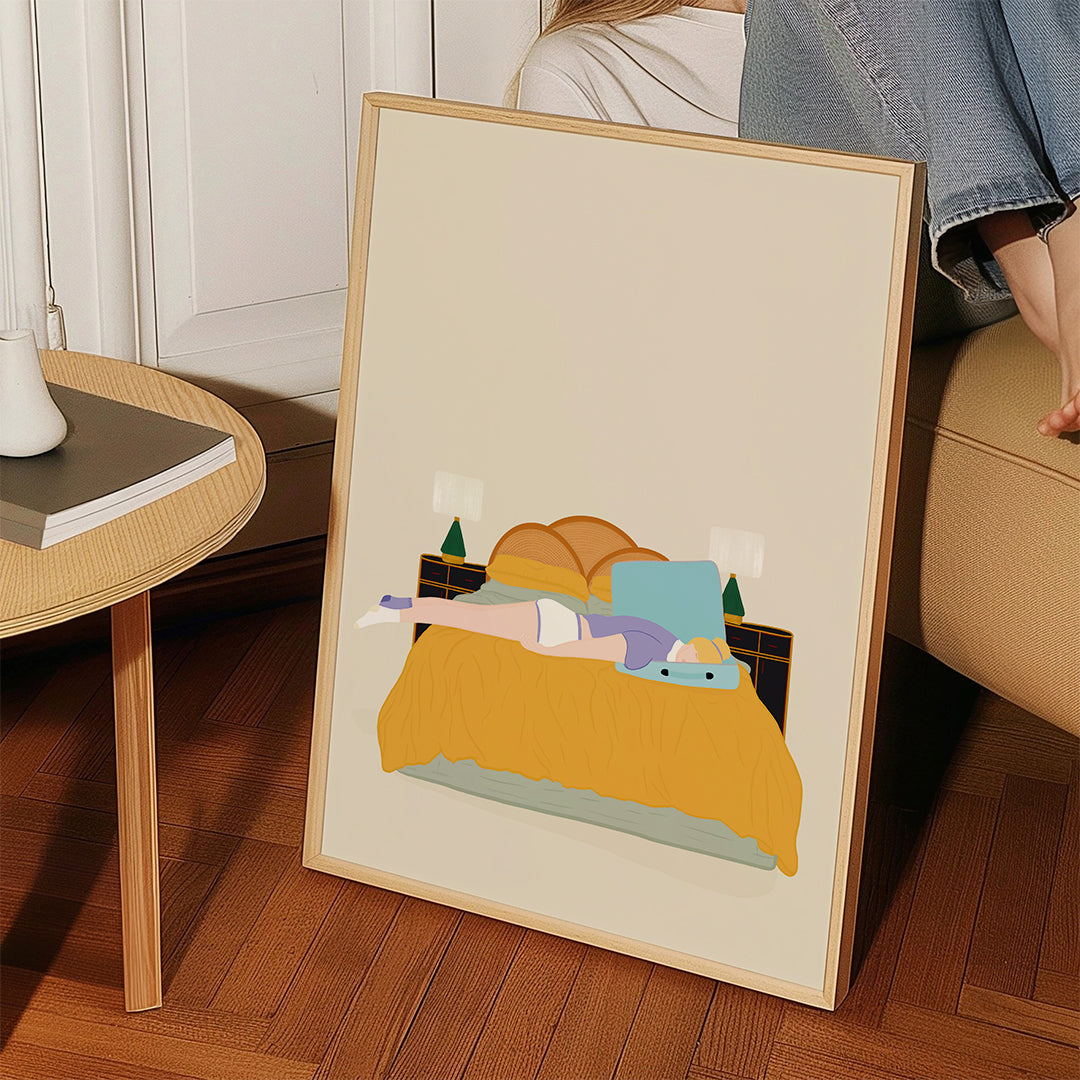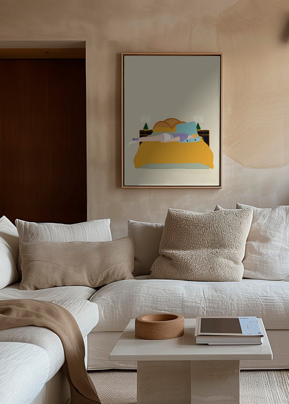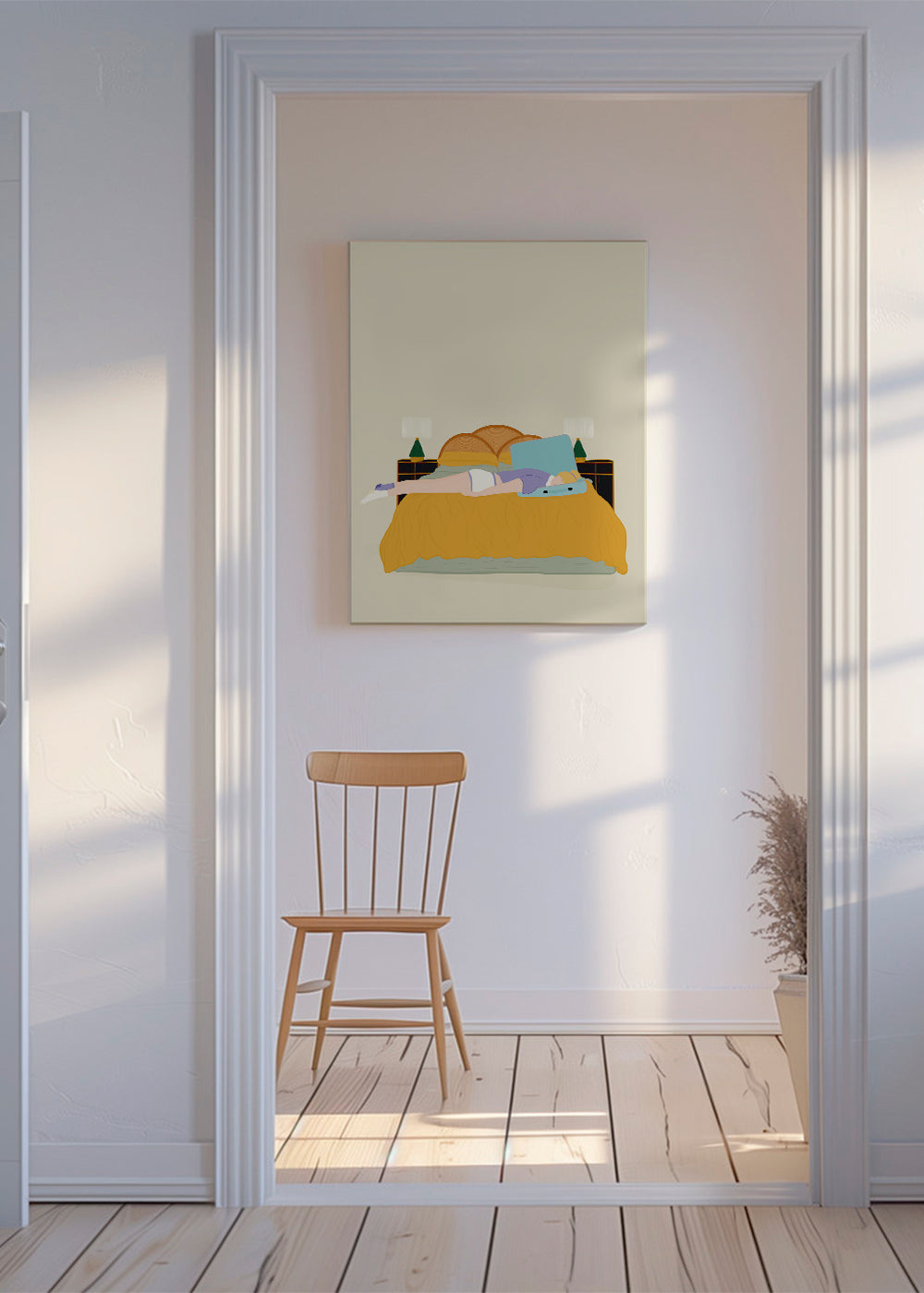 Bonito póster perteneciente a la categoría de cuadros de mujeres, de la mano de 1x, con tonos amarillos, y de disposición vertical. Se trata de una ilustración de estilo sencillo y limpio, combínala con otras ilustraciones para obtener una composición artística. El diseño de tu hogar está en tus manos.