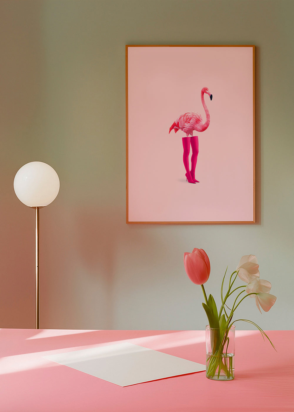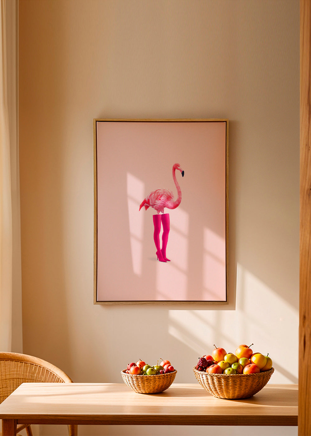 Un diseño de nuestra selección de cuadros de flamencos, del artista 360Brain, en tonalidades de colores rosas, y ideal para poner en posición vertical. Decorar con cuadros de animales es una forma de transmitir energía a través de tus paredes. Crea el ambiente perfecto.