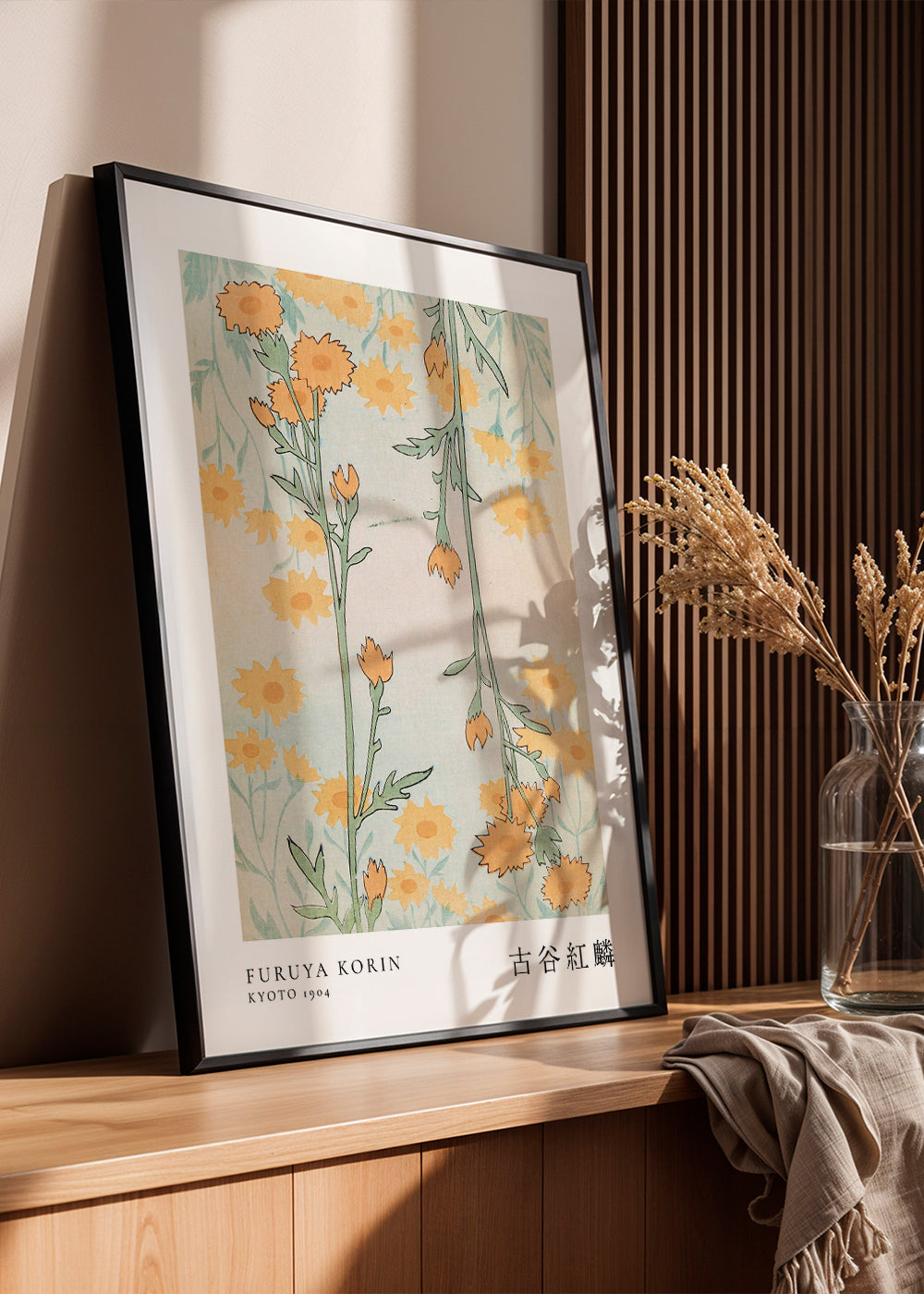 Un póster de nuestra colección de cuadros japoneses, de la mano de Seven Wall Art, con tonos amarillos, y con orientación vertical. Las láminas con ilustraciones son perfectas para llenar las paredes de creatividad. Viste las paredes de tu hogar.