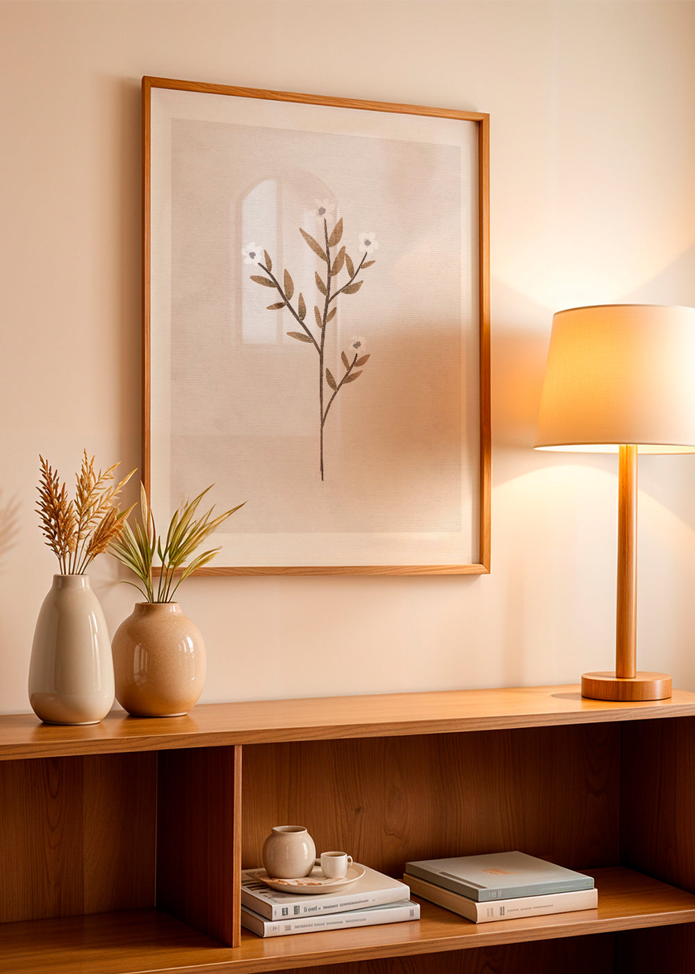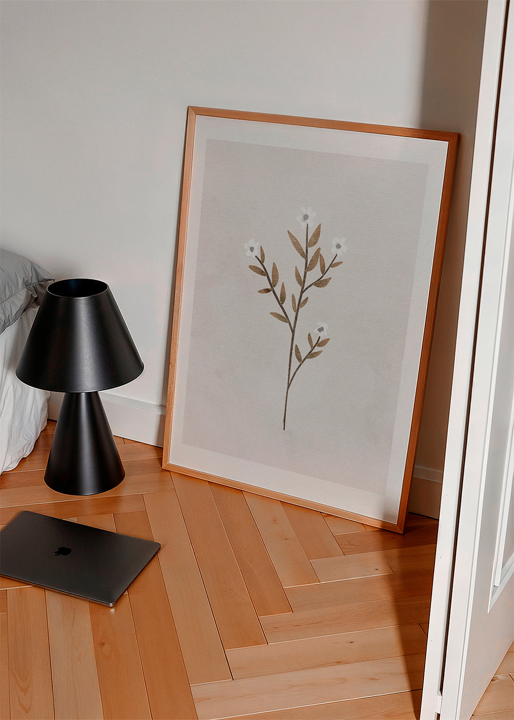 Bonito diseño de nuestro conjunto de cuadros de flores y plantas, del artista Goed Blauw, con matices de tonos beige, y de disposición vertical. Se trata de una ilustración de estilo sencillo y limpio, combínala con otras ilustraciones para obtener una composición artística. Construye tu rincón favorito.