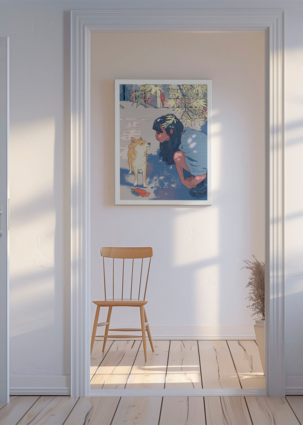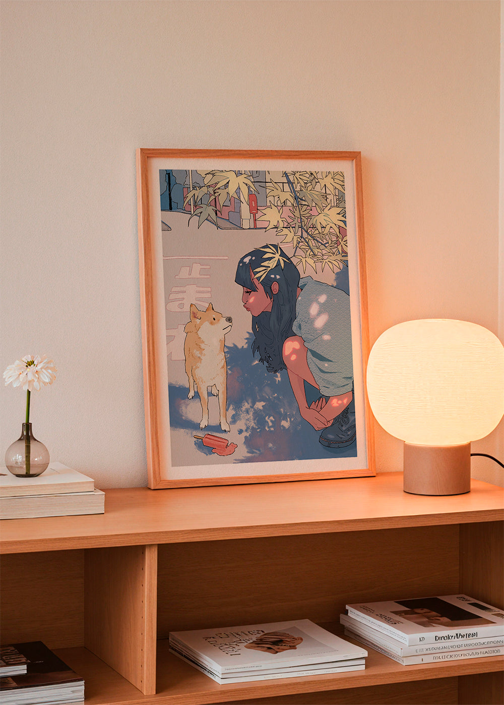 Cuadro de estilo nórdico Girl & the Shiba