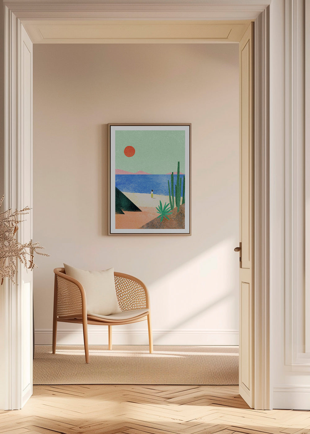 Un póster de nuestro conjunto de cuadros del mar, de la mano de Henry Rivers, en tonos multicolor, y en formato vertical. La naturaleza en su máximo esplendor, los cuadros con paisajes transmiten mucha calma. Un diseño precioso a la altura de tu decoración.