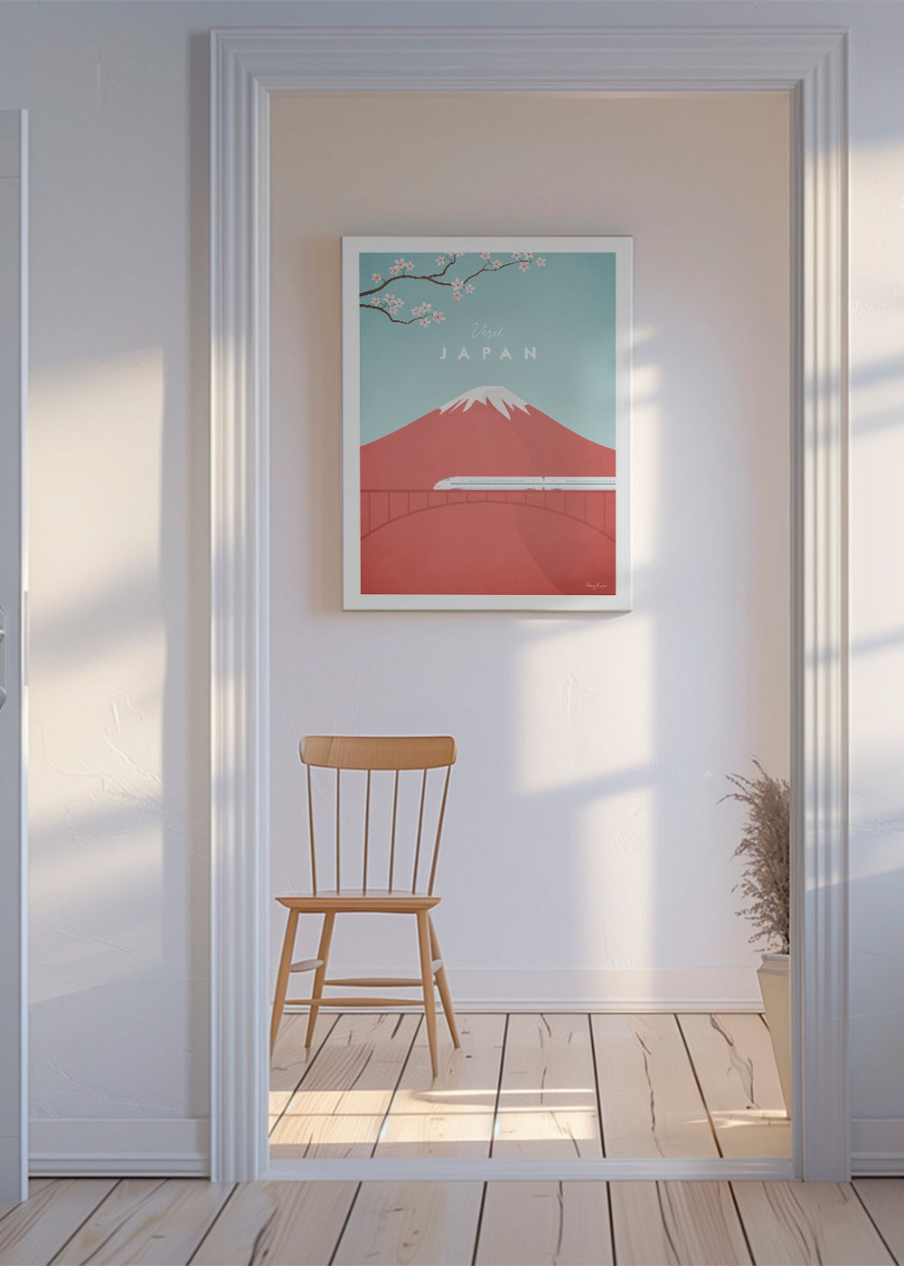 Una obra de nuestra colección de cuadros japoneses, de la colección de Henry Rivers, en tonalidades de colores rojos, y en formato vertical. Combina skylines, fotografías y mapas de ciudades para crear una composición solo apta para viajeros. Añade un poco de arte a la decoración de tu hogar.