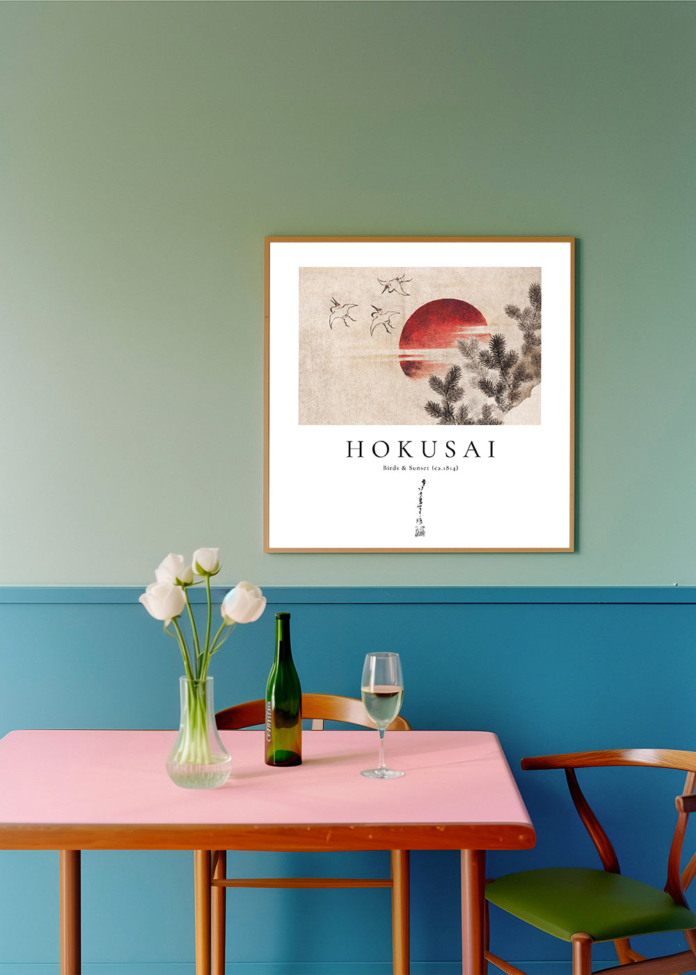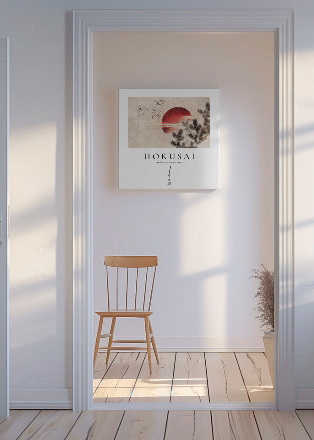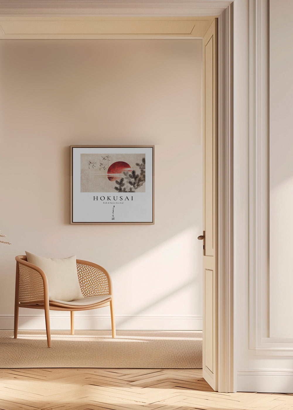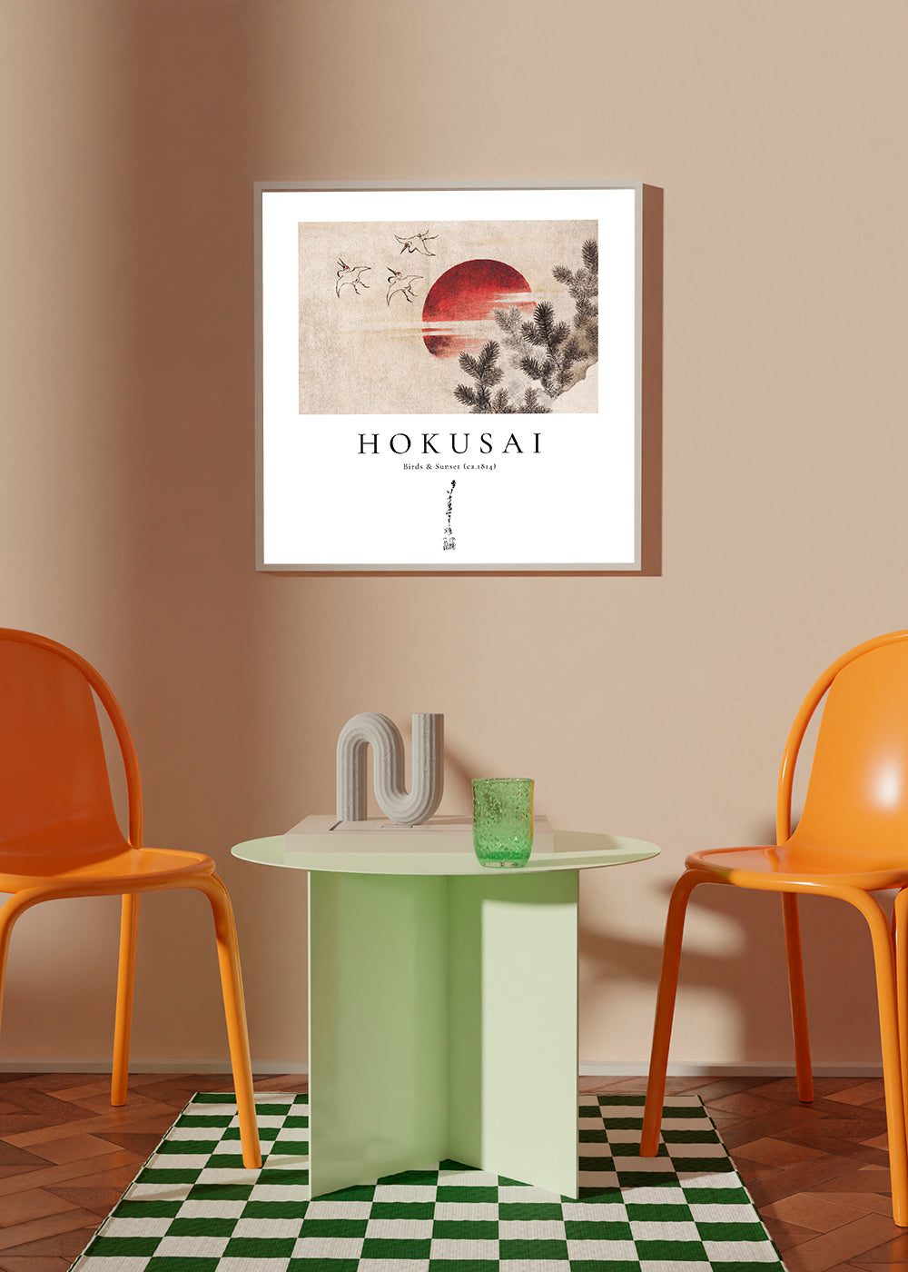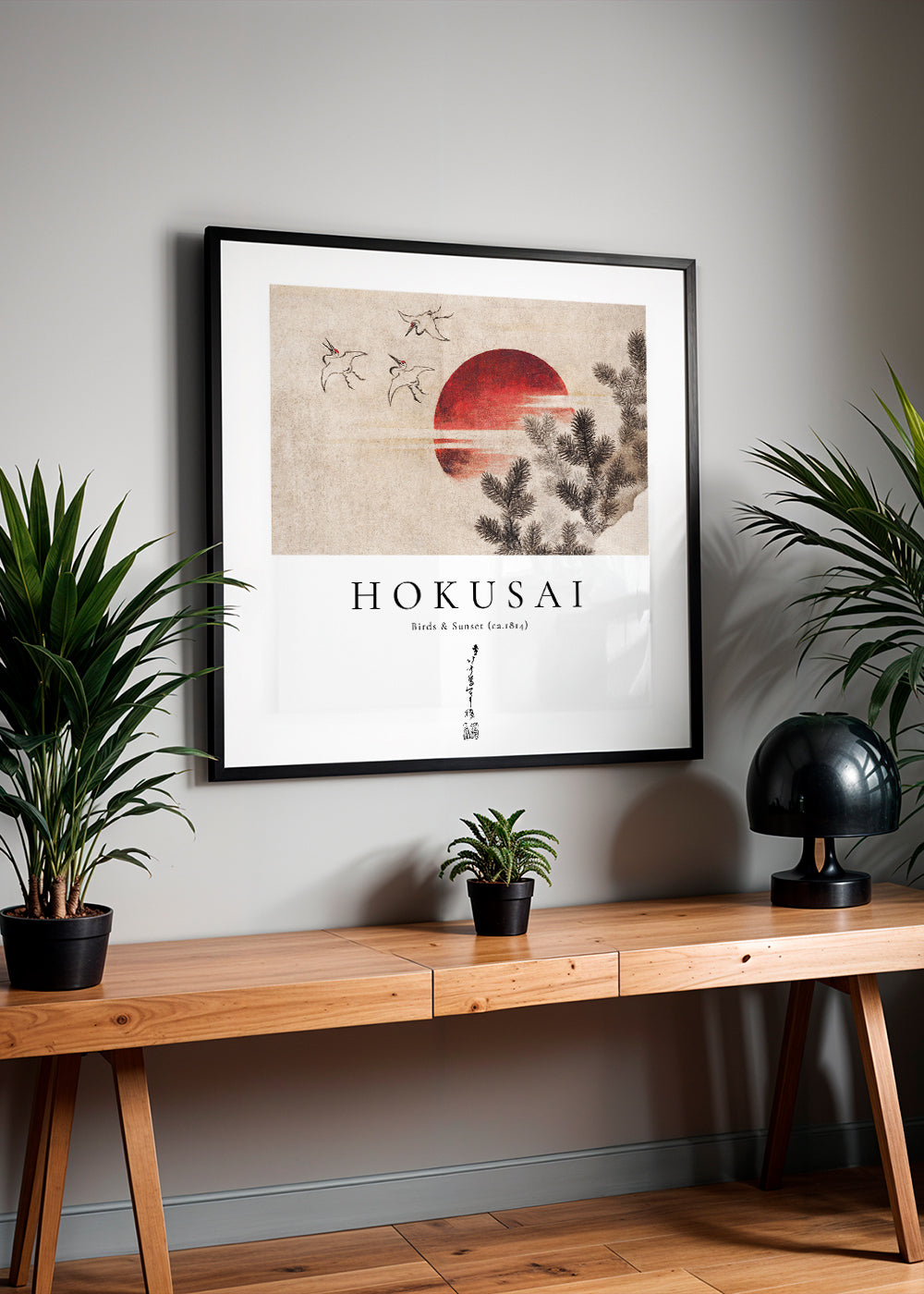 Cuadro de estilo nórdico Katsushika Hokusai birds and sunset from Album of Sketches - Square