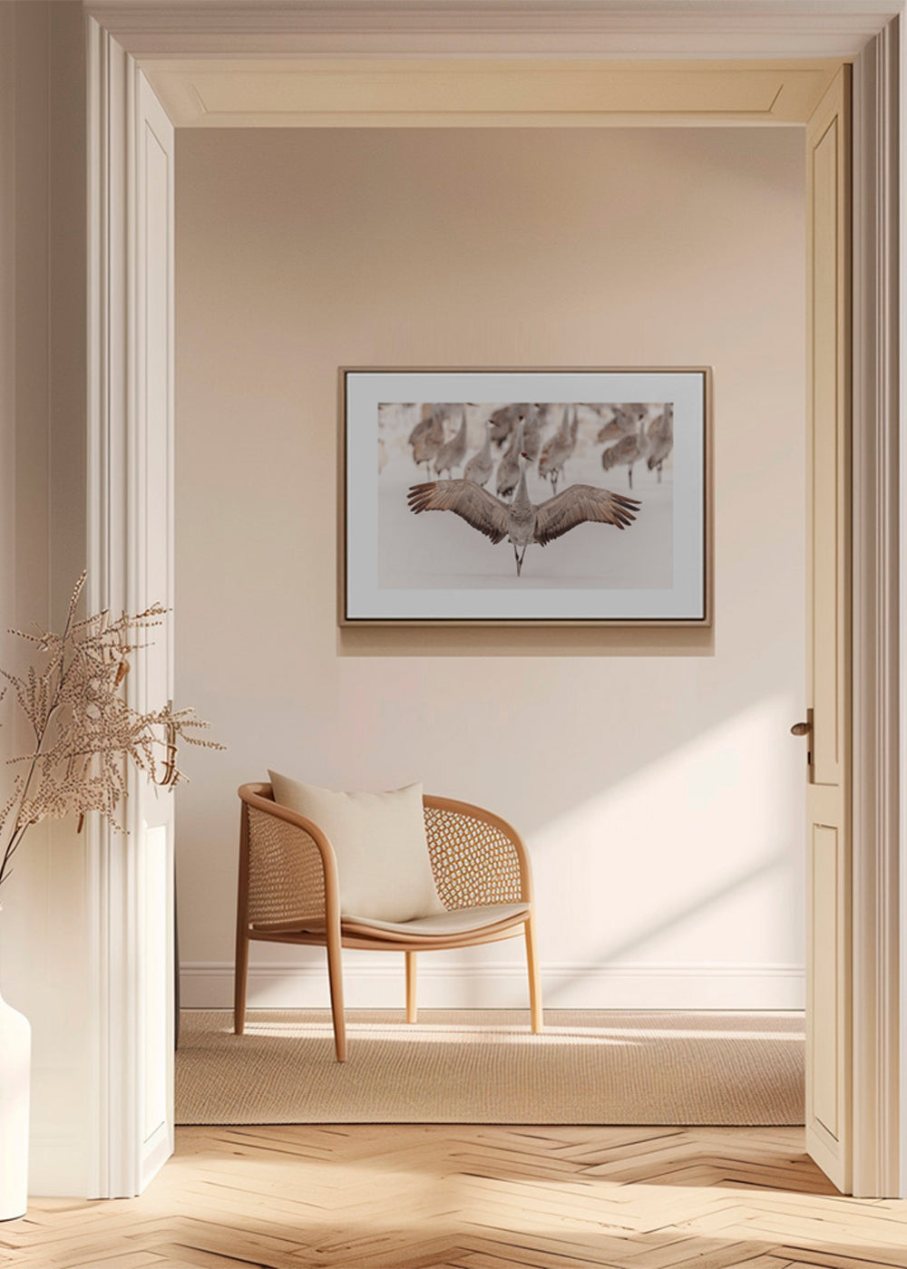Este diseño con inspiración en nuestra colección de cuadros de pájaros, con colores beige, y de posición horizontal. Las láminas de animales nos permiten mostrar nuestro lado más salvaje en la decoración de las paredes. Transforma tus ambientes a partir de las paredes. Esta obra incluye un margen blanco que enmarca el diseño para potenciar su estilo.