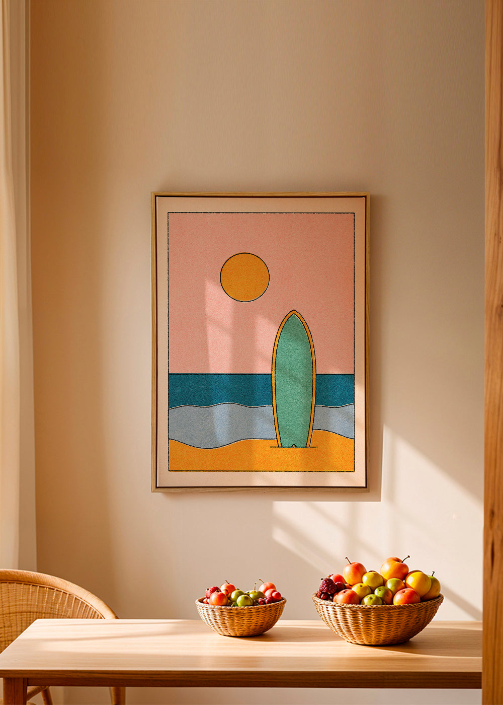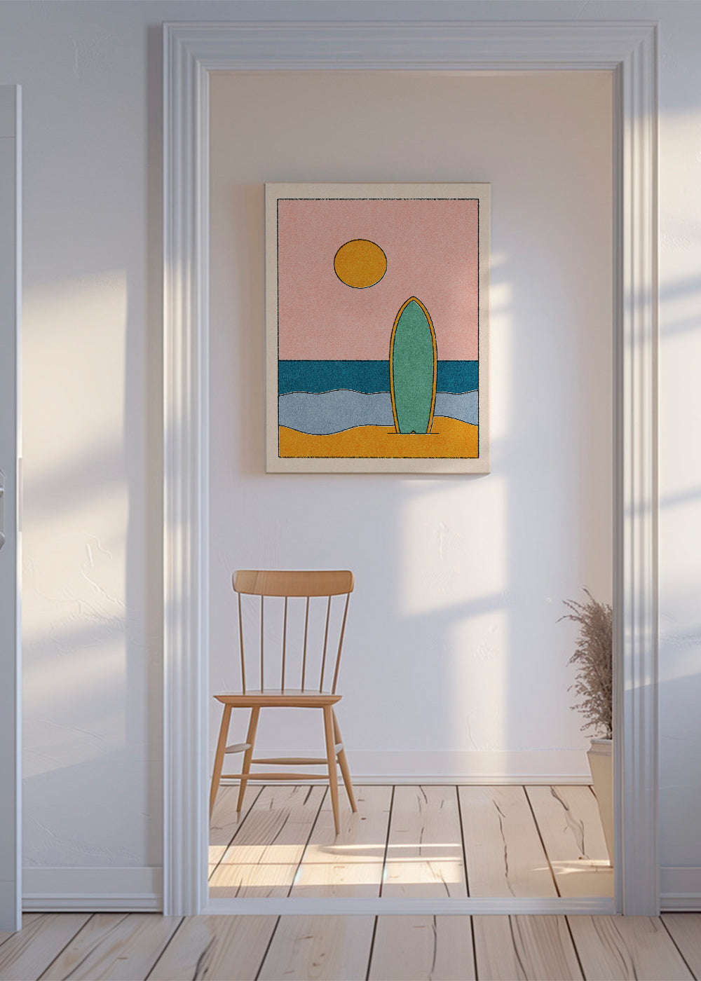 Una lámina de nuestra colección de cuadros de surf, creada por Daniel Coulmann, en tonos multicolor, y de disposición vertical. Las láminas con ilustraciones son perfectas para llenar las paredes de creatividad. Un toque moderno para tu hogar.