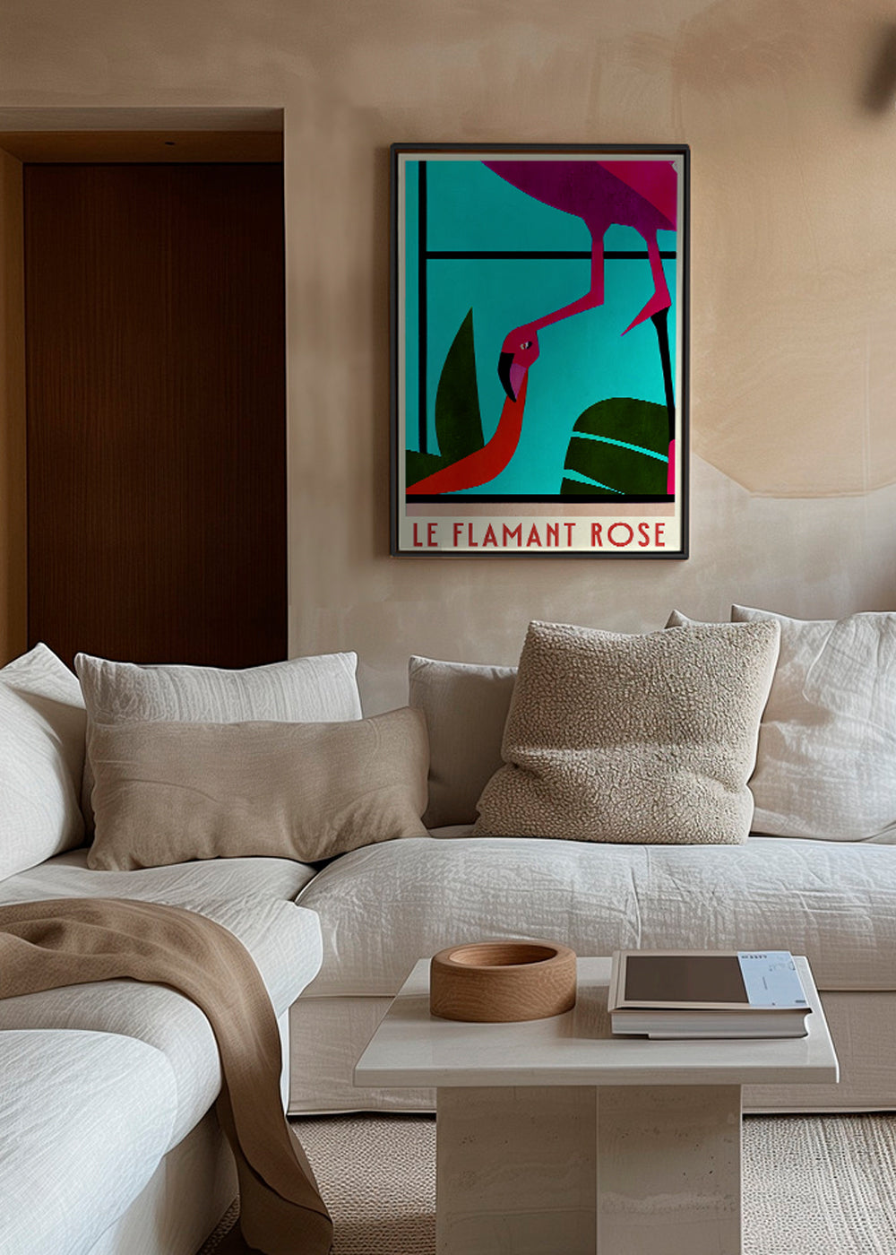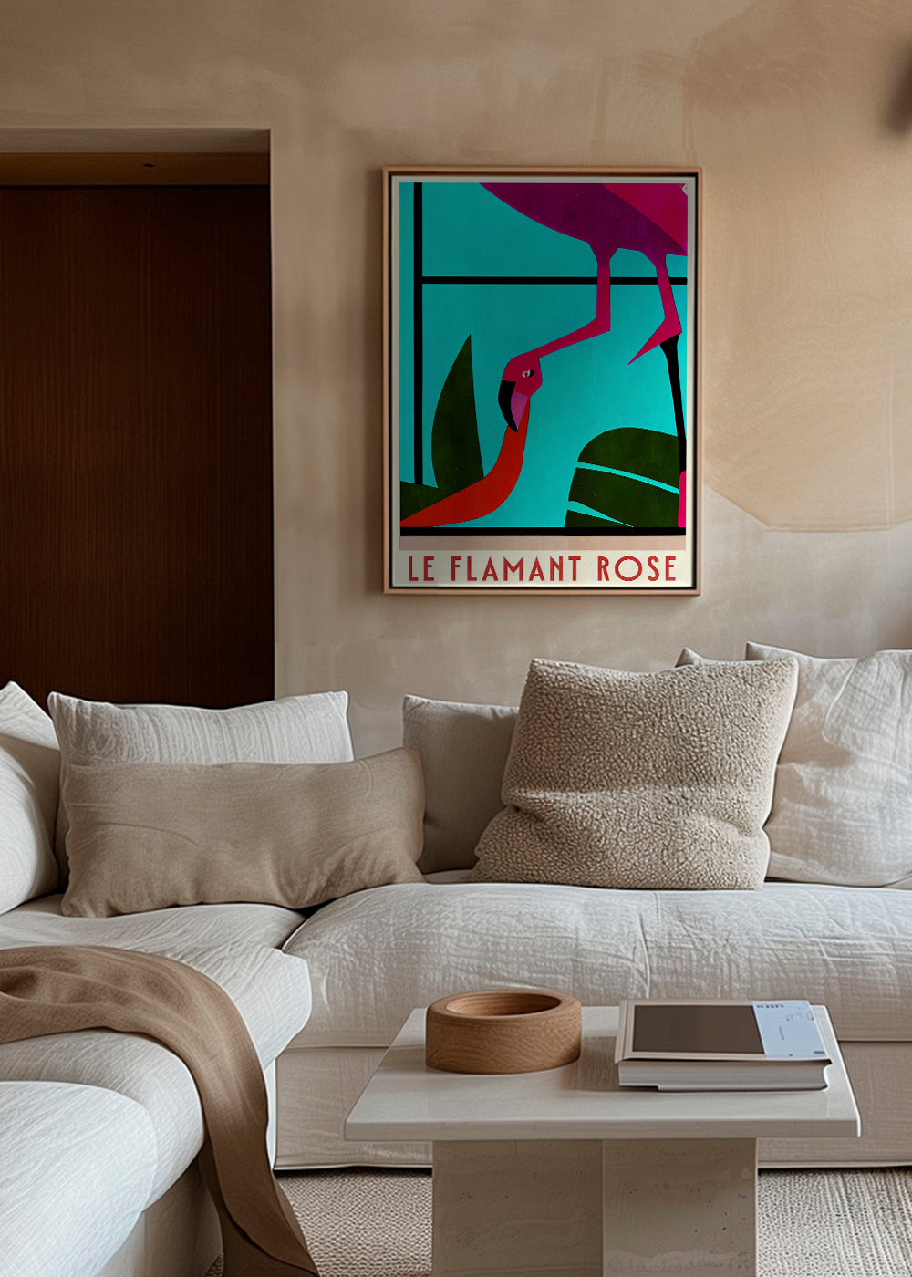 Un diseño del estilo de nuestros cuadros de flamencos, que nos presenta Bo Anderson, con colores azules, y ideal para poner en posición vertical. Dale un toque vintage al ambiente combinando este y otros posters de estilo retro. Transforma tus ambientes a partir de las paredes.