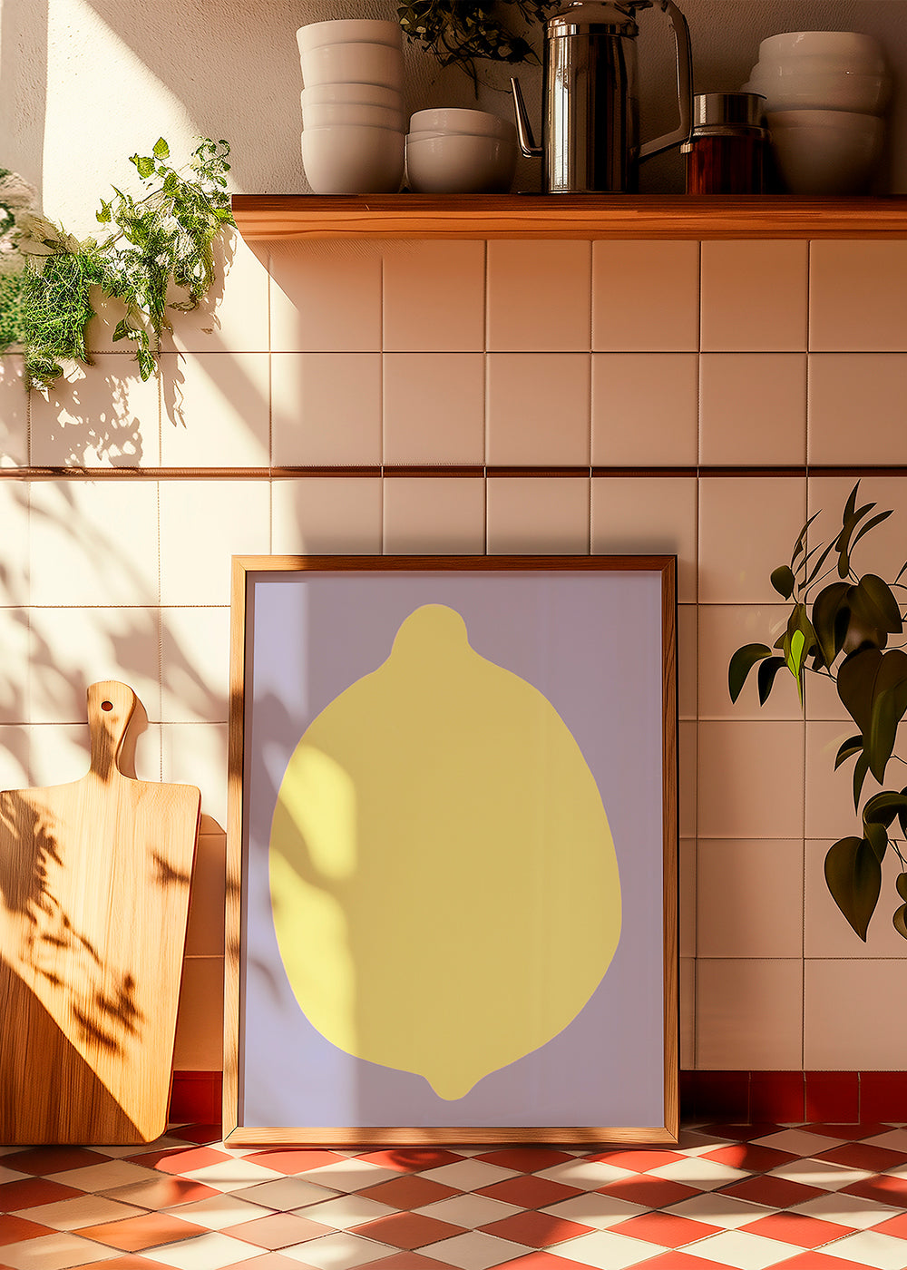 Un póster de nuestra categoría de cuadros de frutas, de la colección de 1x, con colores amarillos, y para colocar en posición vertical. Se trata de una obra de líneas cuidadas y tonos nórdicos ideales para una decoración escandinava. Paredes elegantes para hogares chic.