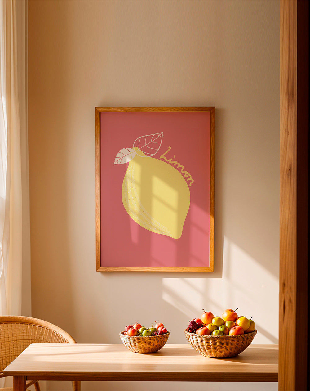 Una lámina de nuestro conjunto de cuadros de frutas, de 1x, en tonos amarillos, y para colgar en posición vertical. Un diseño de estilo nórdico para aquellos que buscan decorar sus paredes con toques sencillos y minimalistas. Un toque moderno para tu hogar.