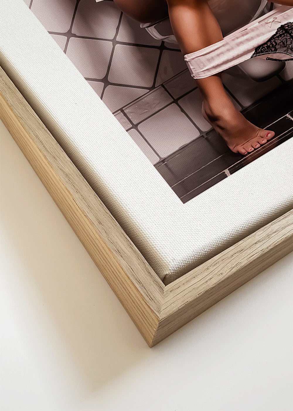 Si seleccionas la opción passepartout, añadiremos el recuadro de cartón blanco al marco, y reduciremos el diseño de la obra. Por ejemplo, si seleccionas una lámina de tamaño 50x70, con marco de color roble y passepartout, reduciremos el diseño de la lámina al tamaño anterior (40x50cm). De esta manera, se adaptará perfectamente a la ventana interior del passepartout.