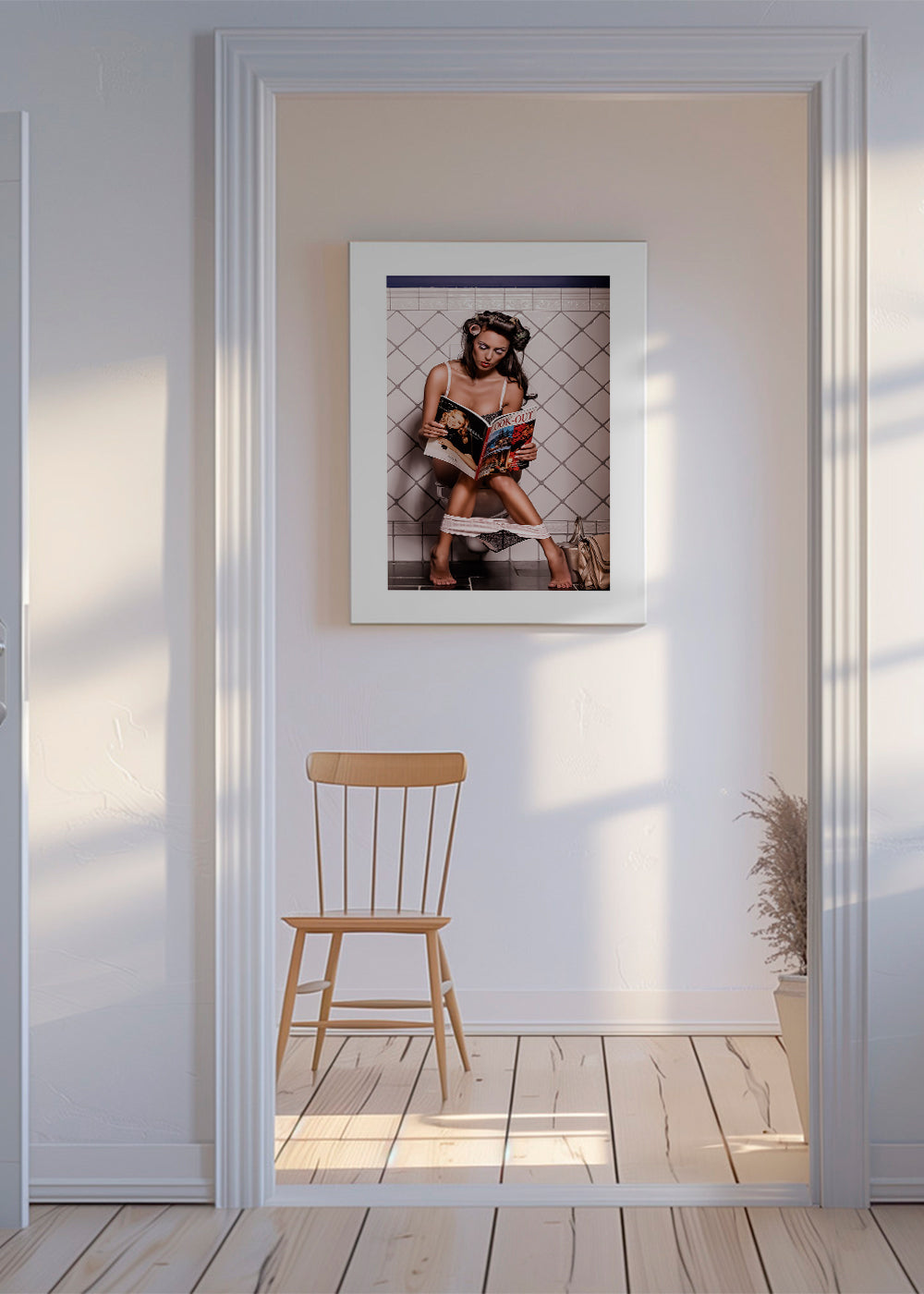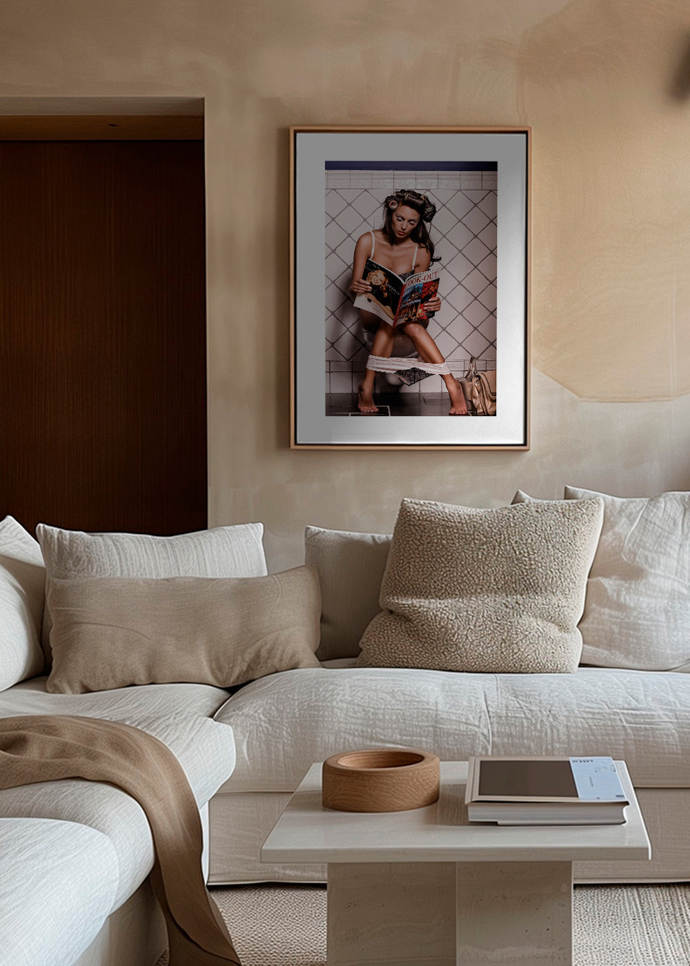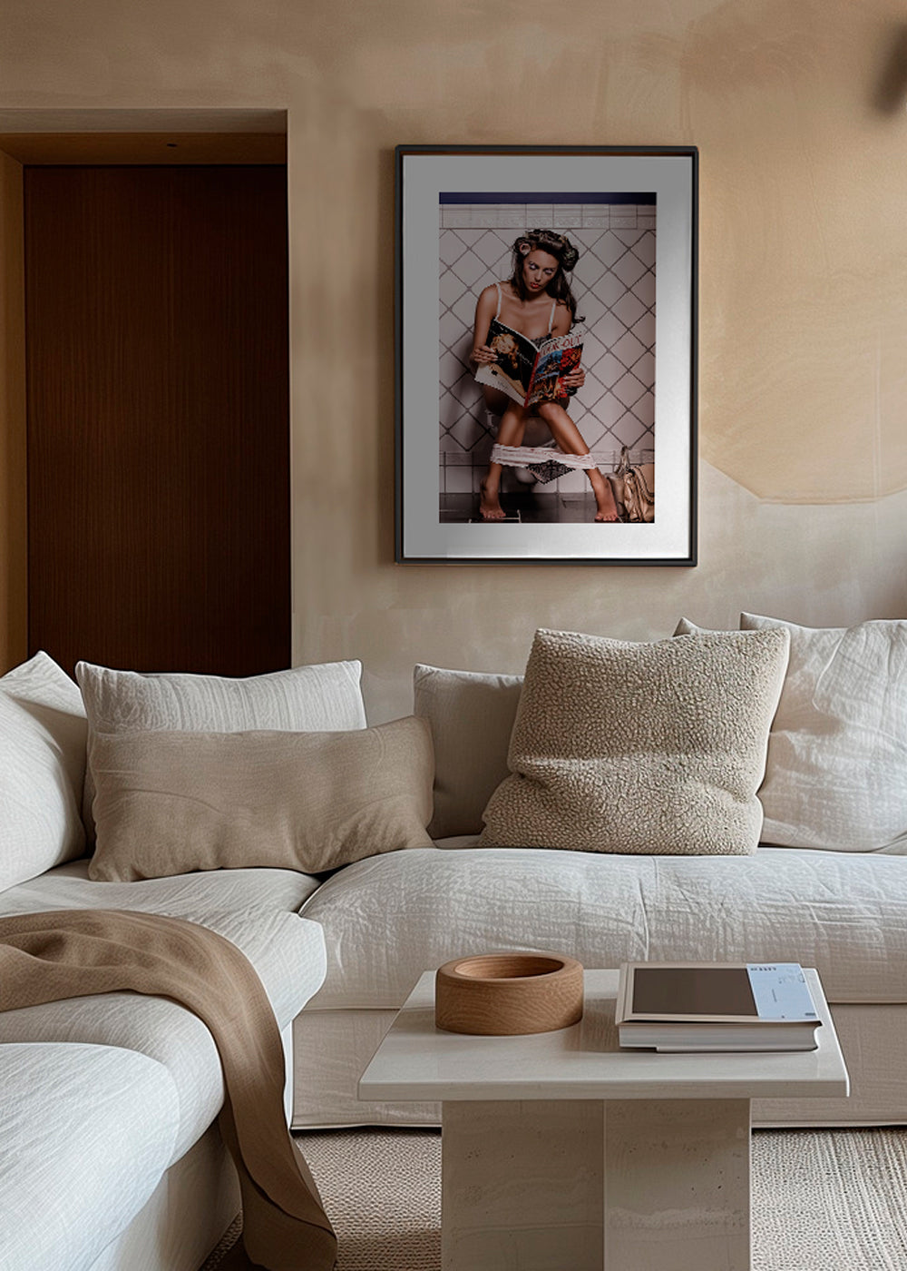 Un póster de nuestra selección de cuadros de mujeres, en tonos marrones, y ideal para poner en posición vertical. Las fotos para enmarcar ayudan a modernizar los espacios del hogar. Un toque moderno para tu hogar. El diseño incluye un margen blanco que añade contraste a la obra.